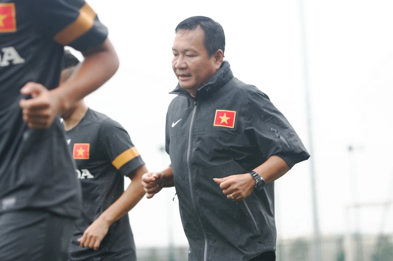 | HLV Hoàng Văn Phúc theo sát sự tập luyện của các học trò. |