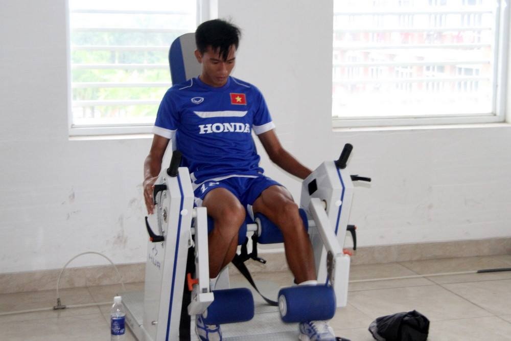 | Ngọc Thắng tập luyện trong phòng gym để hồi phục chấn thương. |