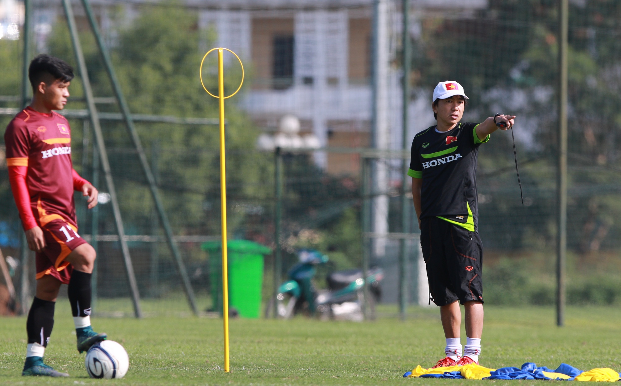 | Trong buổi tập thứ năm kể từ khi hội quân, HLV Miura cho các học trò làm quen với phương pháp mới. Cầu thủ U23 Việt Nam lần lượt đi bóng qua chướng ngại vật, thực hiện động tác qua người giả định trước khi dẫn bóng vượt rào 3 lần. |