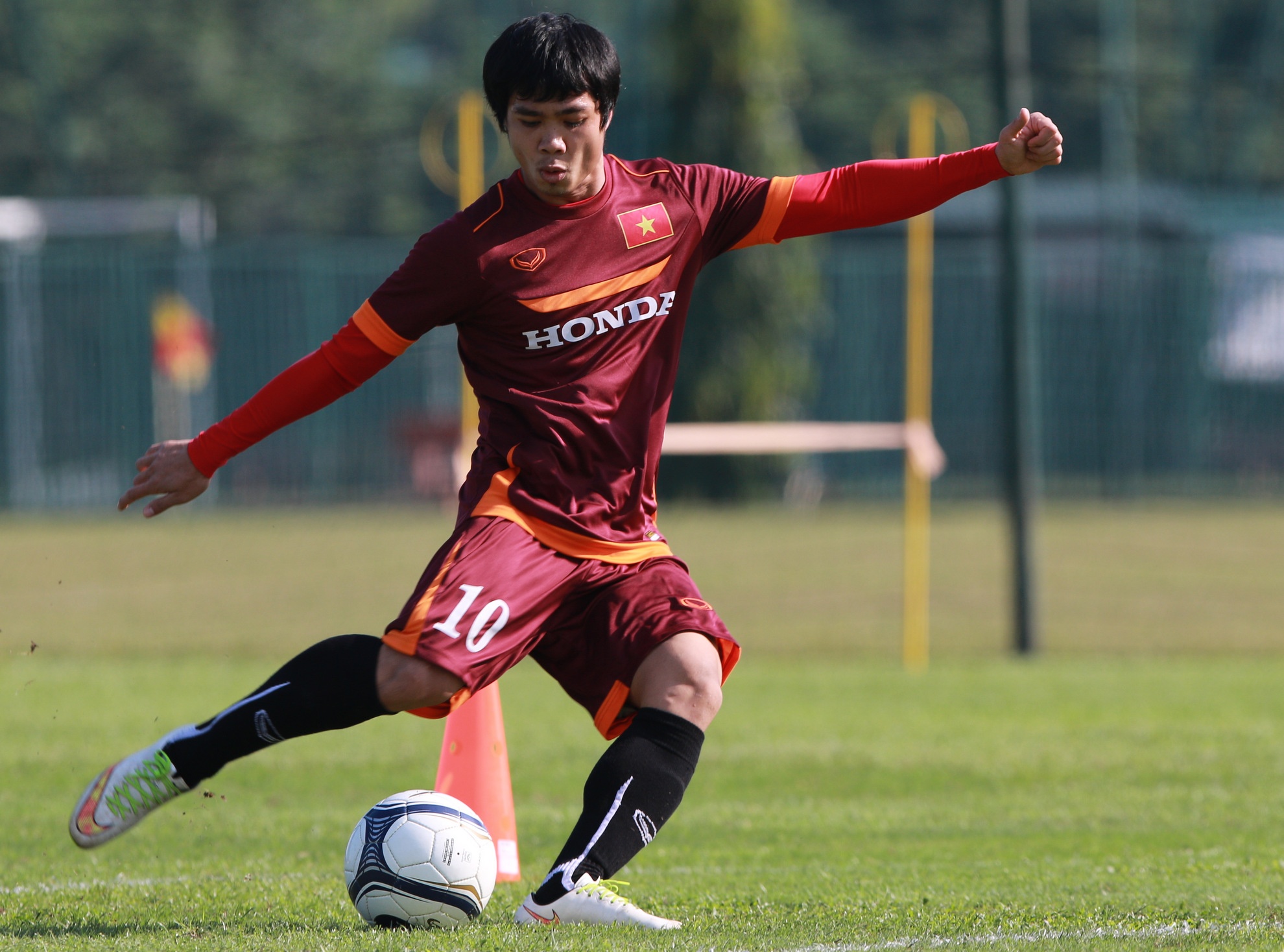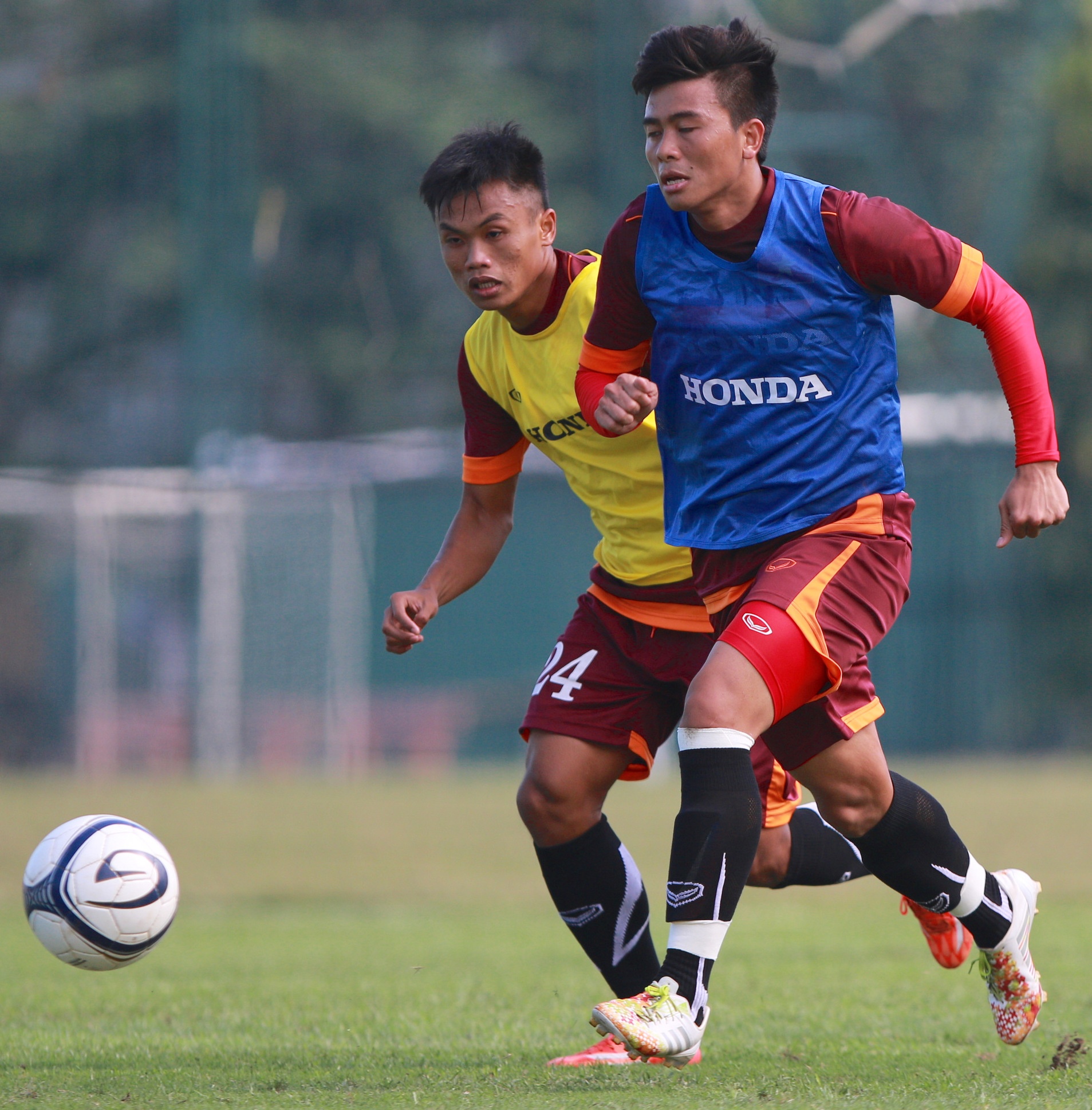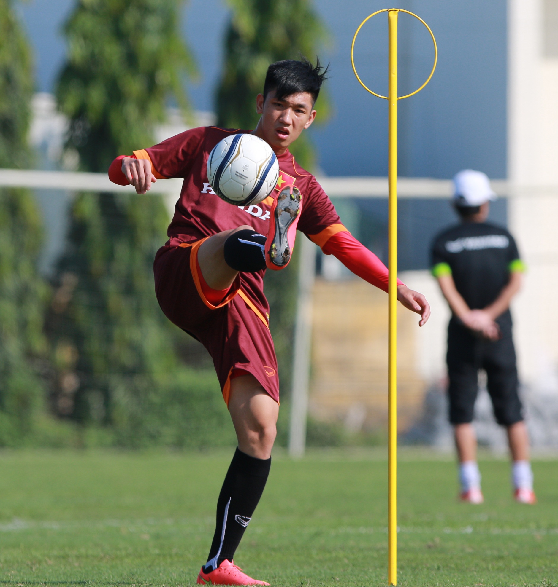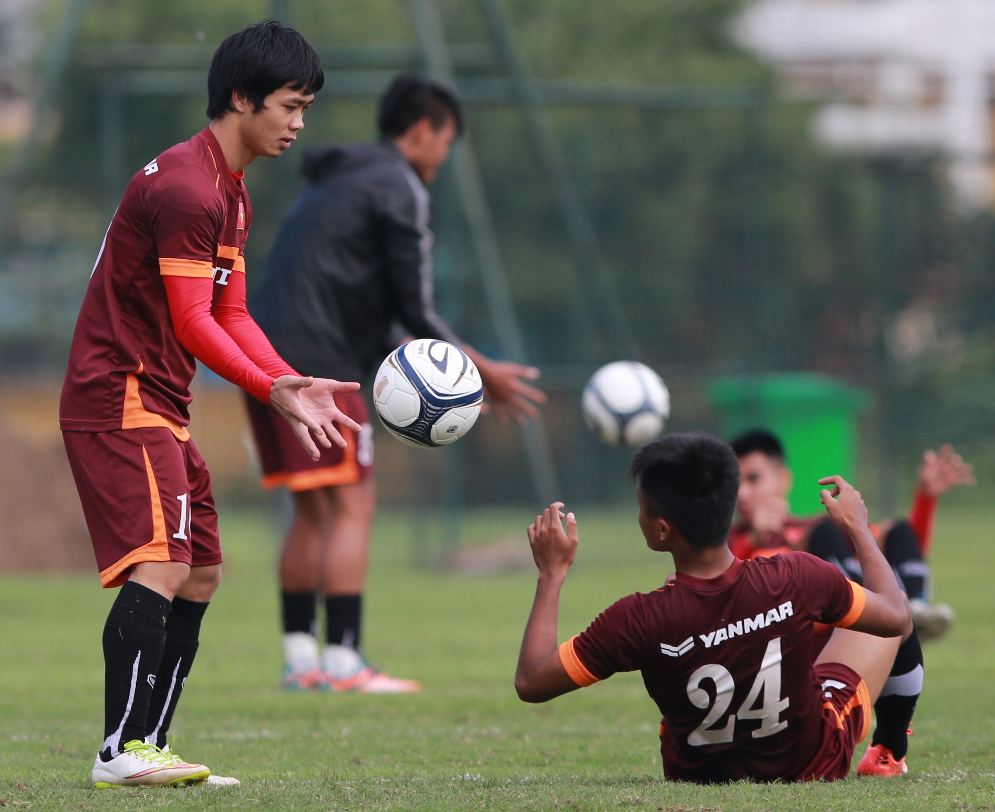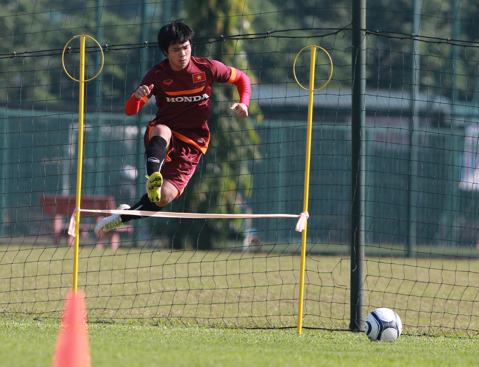 | Công Phượng cùng các đồng đội thực hiện bài tập mới nhiều lần theo sự yêu cầu của Ban huấn luyện. |