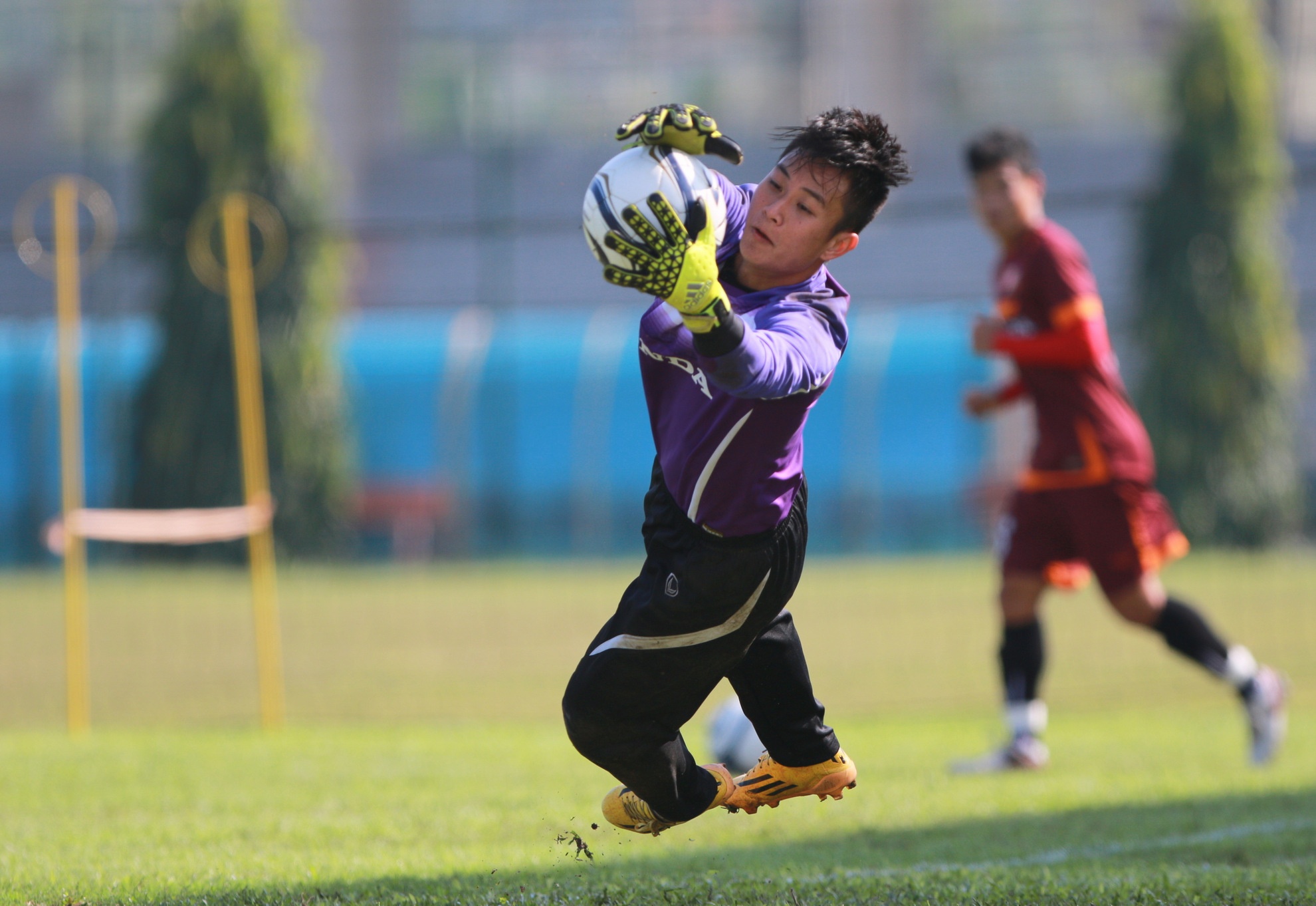 | Các thủ môn Văn Tiến, Hoài Anh, Minh Hoàng, Thanh Tuấn... thay nhau cản phá các cú sút của đồng đội. |