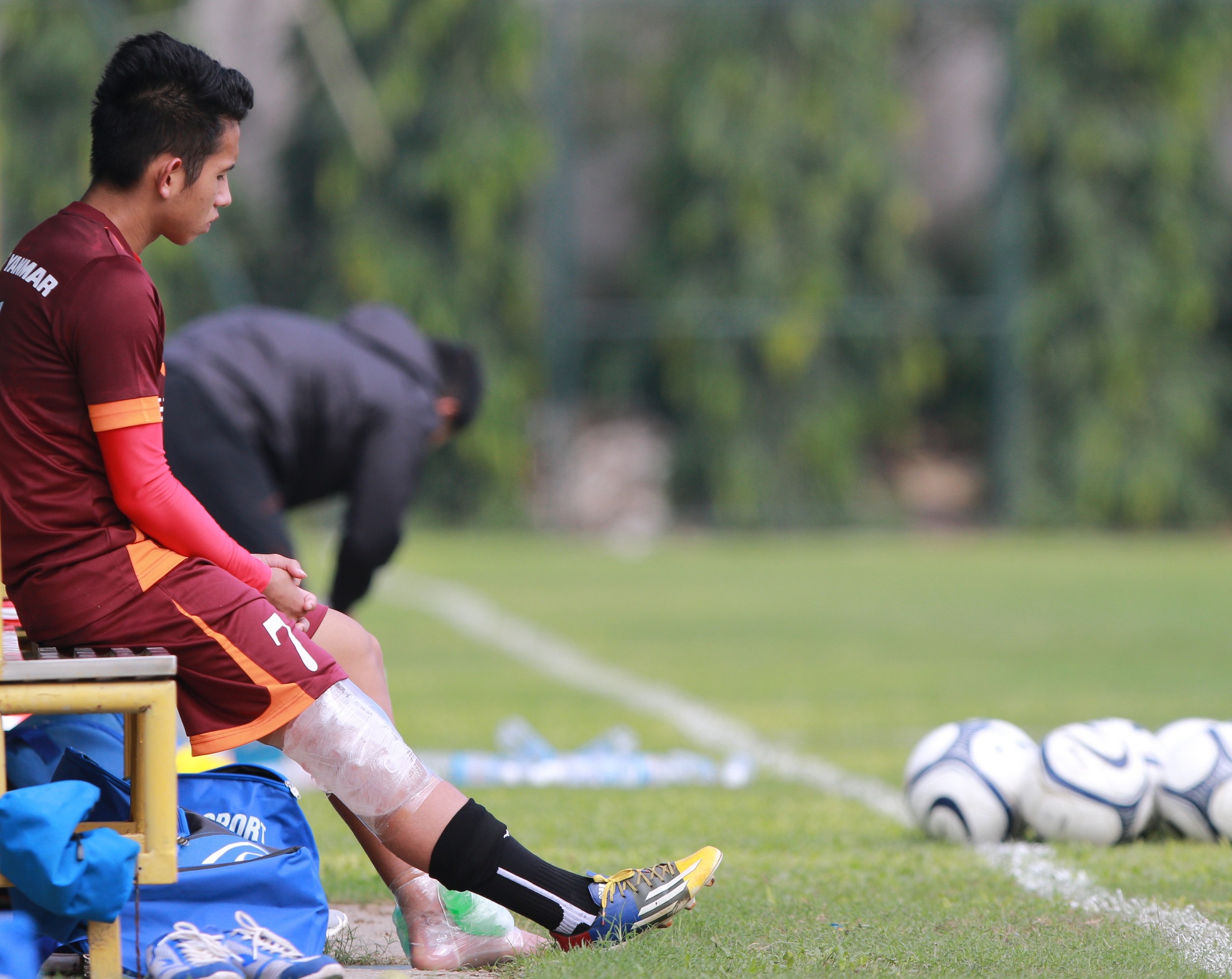| Kết thúc buổi tập, nhiều cầu thủ U23 Việt Nam phải ngâm đá để hồi phục. |