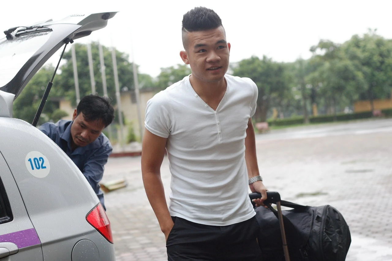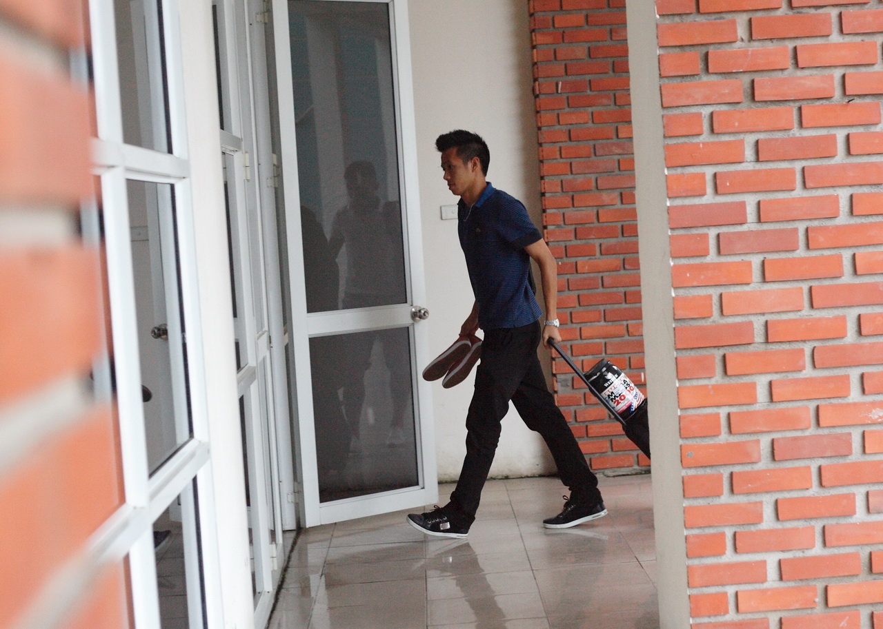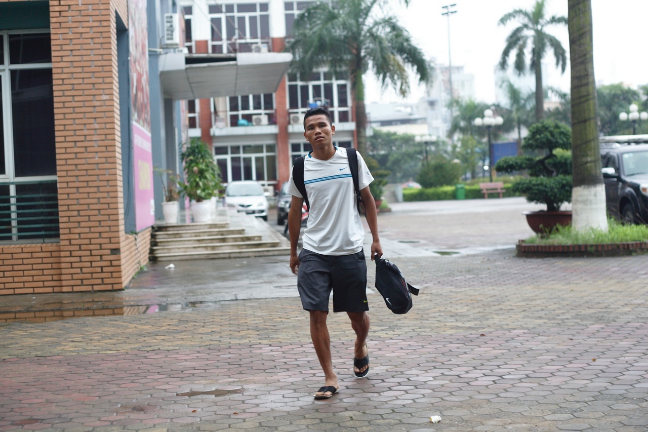 | Cầu thủ Văn Thắng của CLB Thanh Hóa hội quân với đồ đạc gọn gàng. |