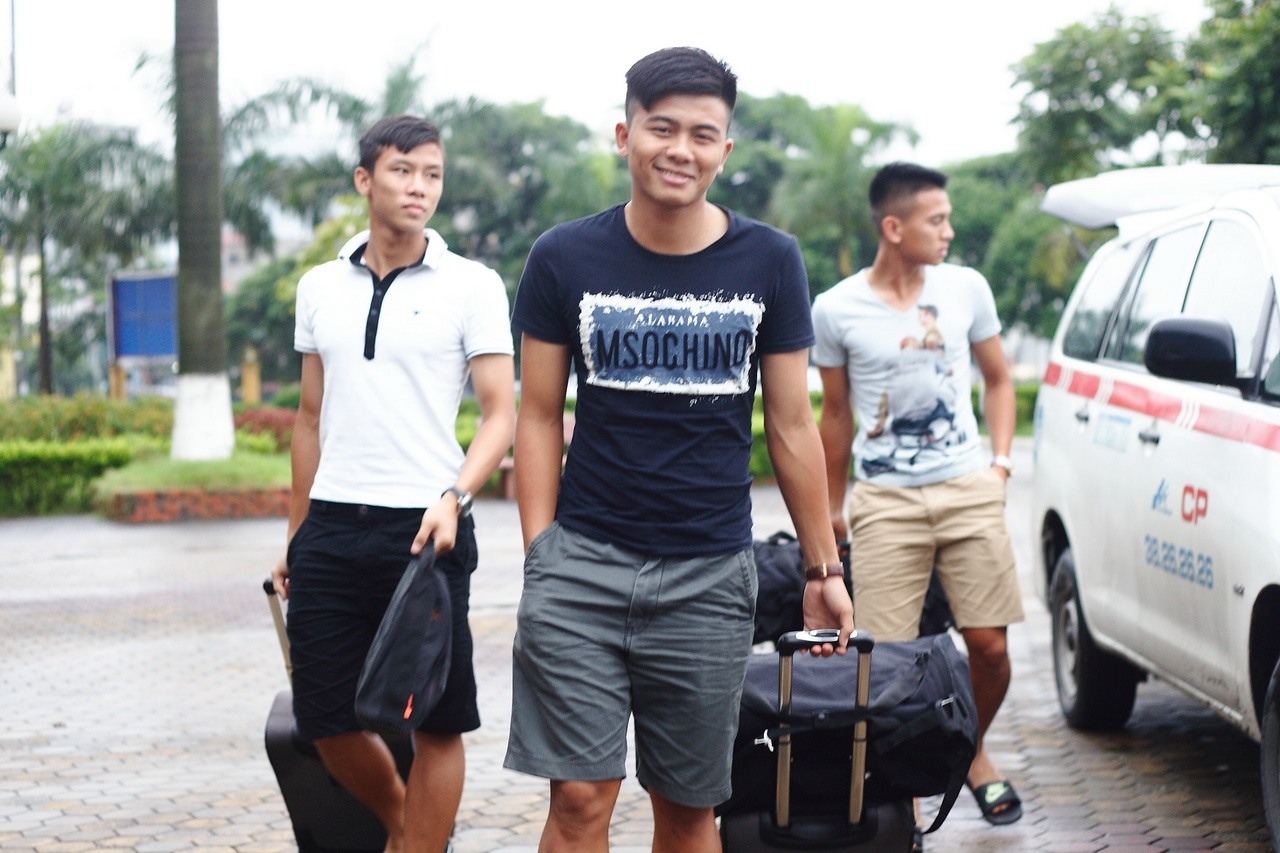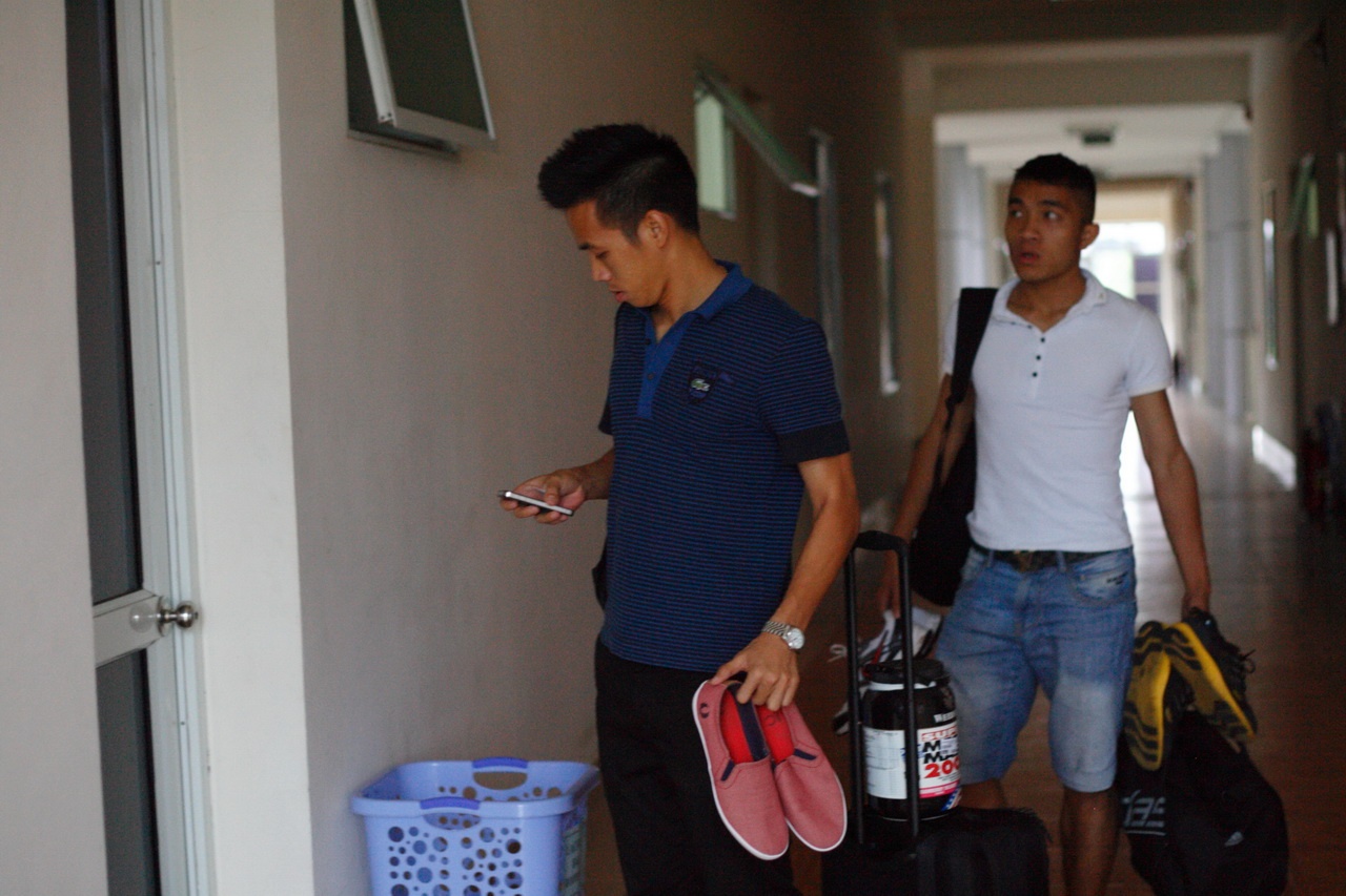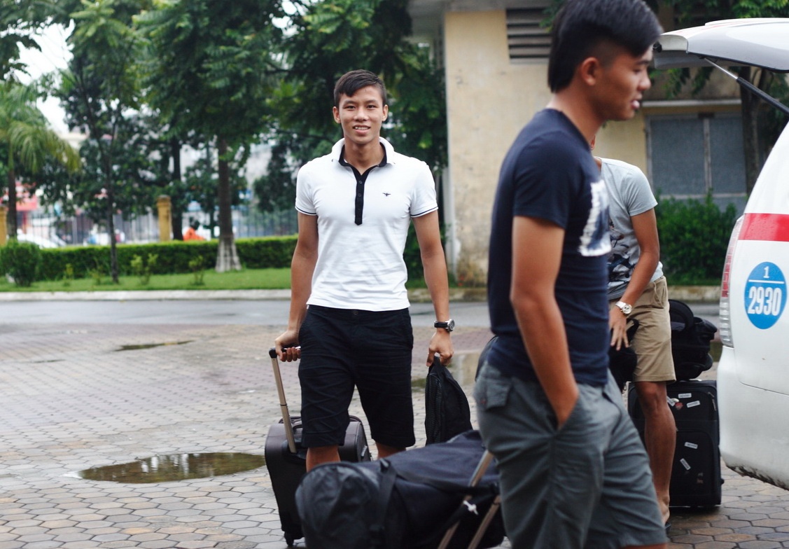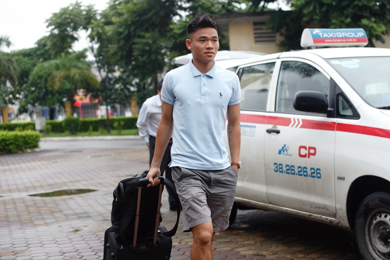 | Cầu thủ Văn Thắng của CLB Thanh Hóa hội quân với đồ đạc gọn gàng. |