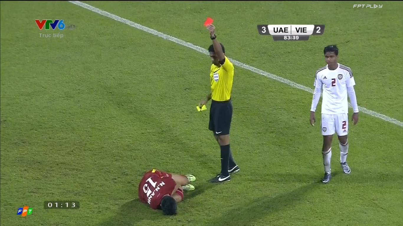 Nỗ lực giành lại một điểm từ tay U23 UAE của thầy trò HLV Miura chính thức bị dập tắt phút 84. Hậu vệ Nam Anh nhận thẻ vàng thứ hai vì phạm lỗi nguy hiểm. Chơi với 9 người trên sân, U23 Việt Nam đã bất lực trong việc tìm kiếm bàn thắng nên chấp nhận nhìn đối thủ ra về với 3 điểm trọn vẹn.