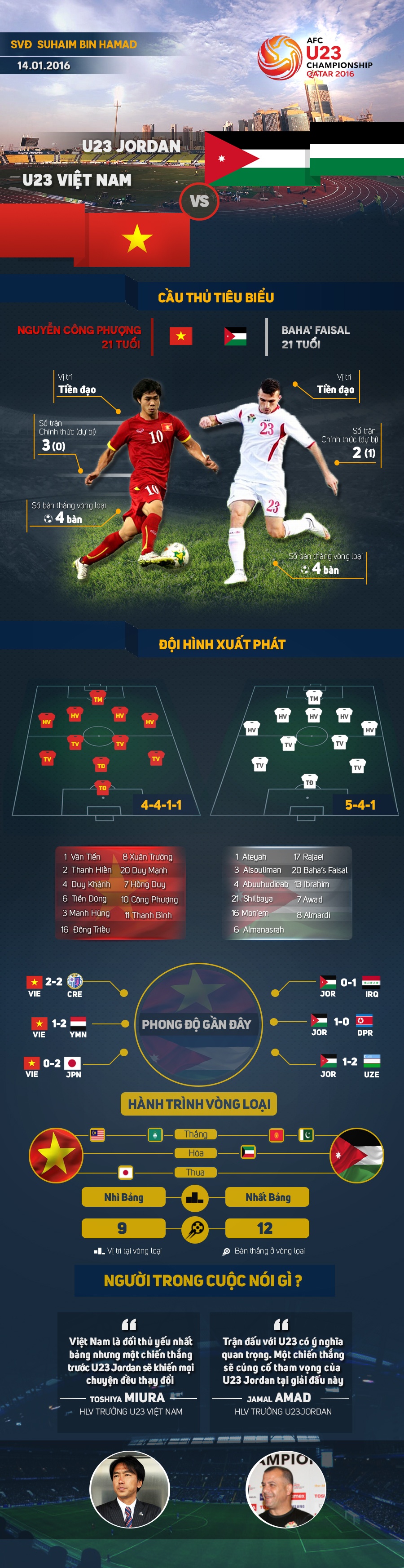 20h30 ngày 14/1, U23 Việt Nam đá trận ra quân vòng chung kết U23 châu Á, gặp U23 Jordan. Một kết quả không thuận lợi sẽ khiến thầy trò HLV Miura gặp khó trong hành trình đi tiếp.