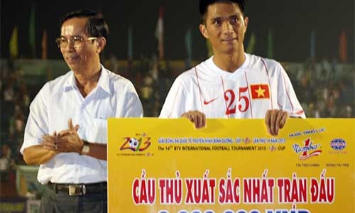 | Hoàng Thiên được bình chọn là cầu thủ hay nhất trận. |