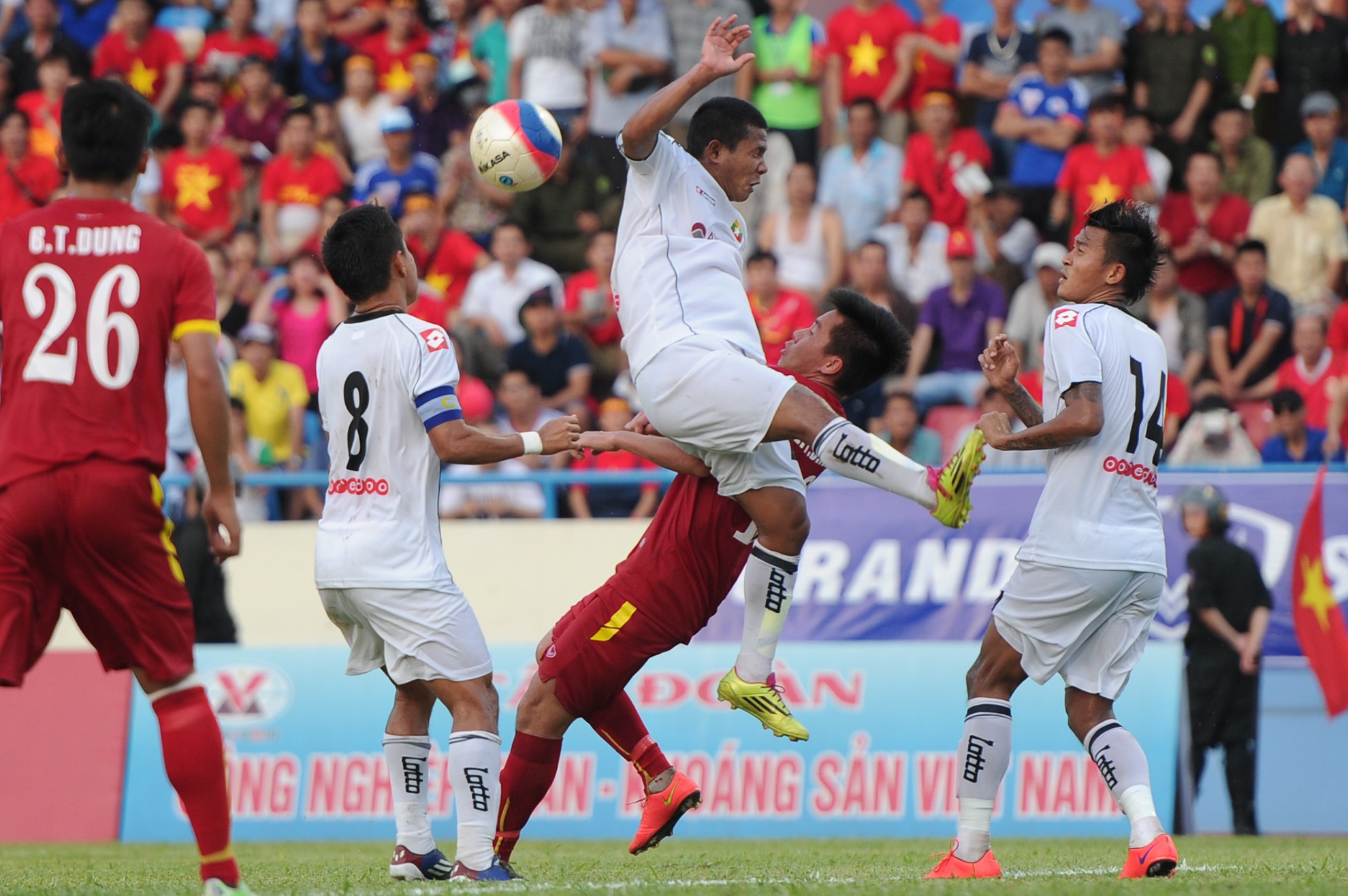 | Tuy nhiên, hàng phòng ngự U23 Việt Nam bị đánh bại phút 89 khi để Zon Moe Aung gỡ hòa 2-2 cho U23 Myanmar. |