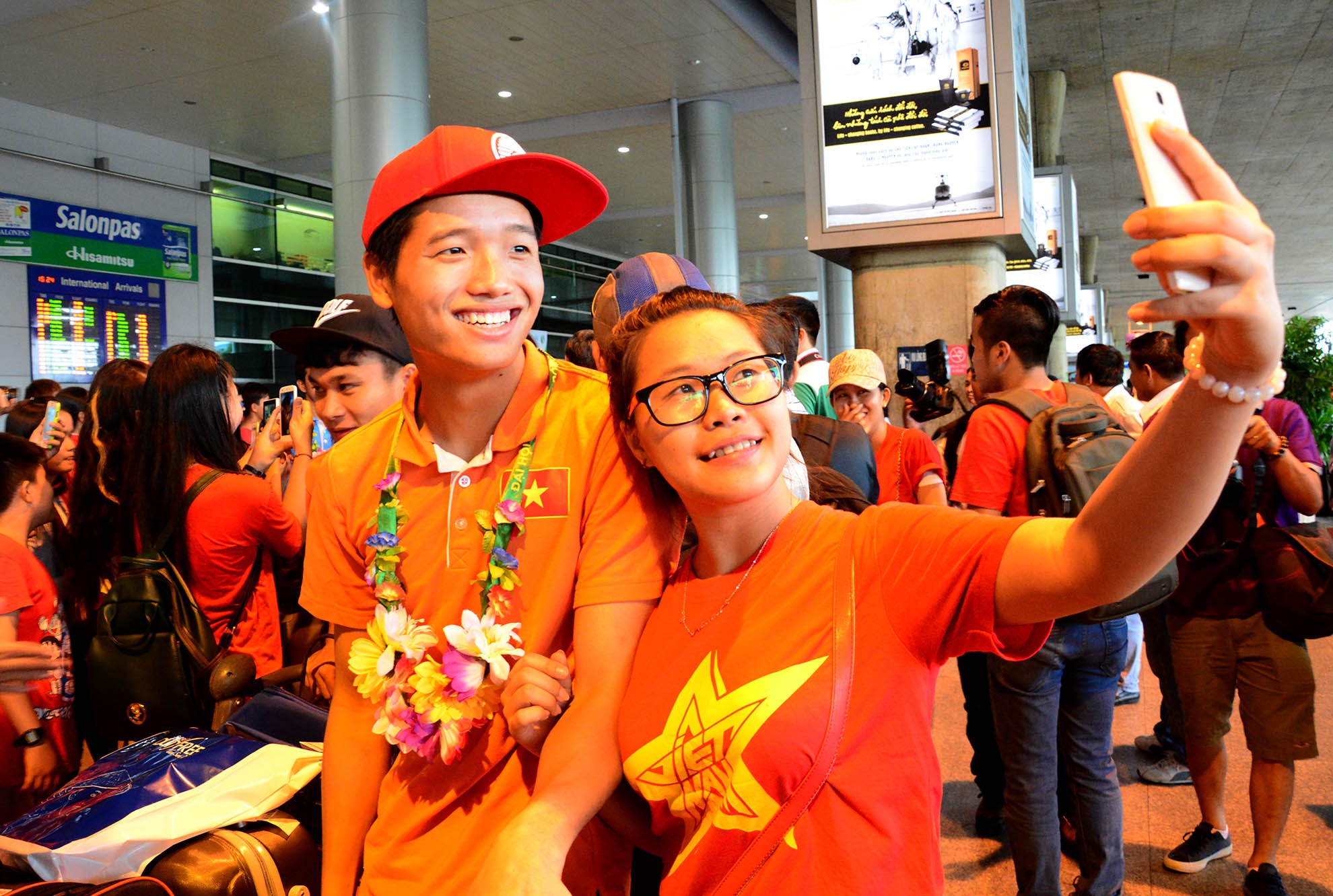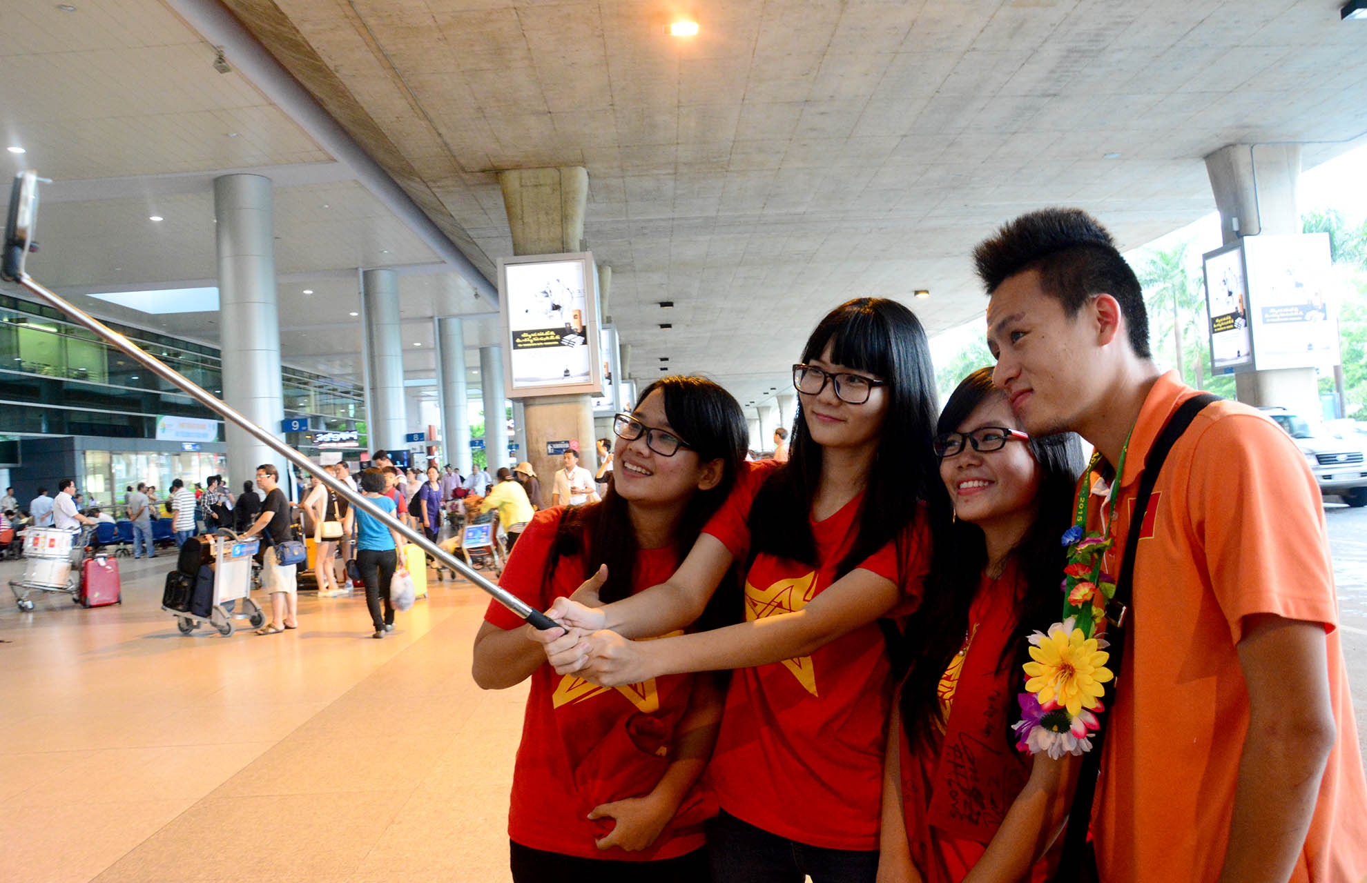 | Từ đầu giờ chiều 16/6, nhiều người hâm mộ đã tập trung tại sảnh ga quốc tế sân bay Tân Sơn Nhất để đón các cầu thủ U23 Việt Nam. |