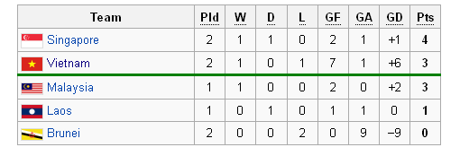 | Bảng xếp hạng bảng A sau trận đấu. |