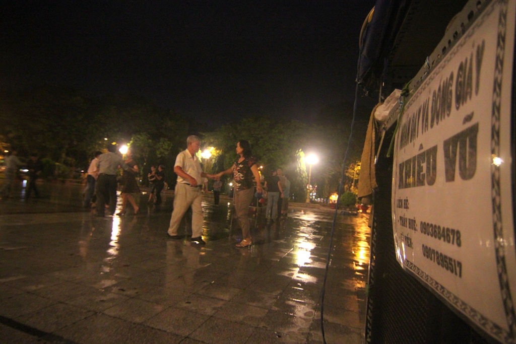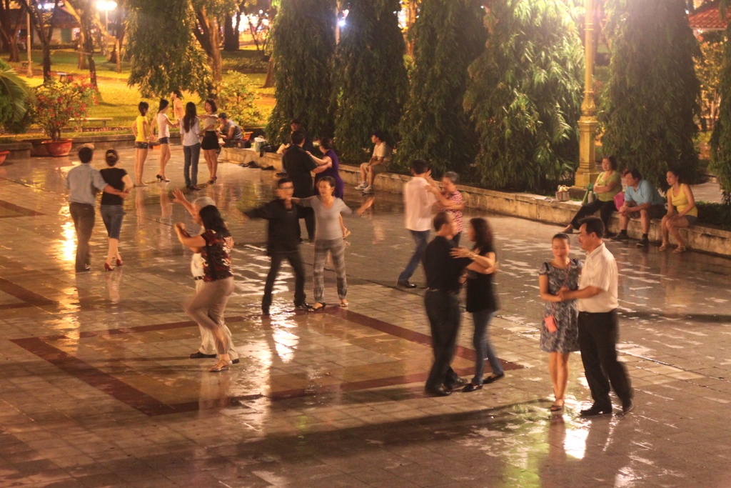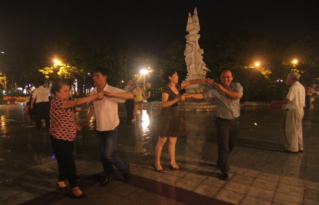 | Để học khiêu vũ, mỗi người đóng 150.000 đồng/tháng. Bên cạnh các lớp học, nhiều nhóm khác đã biết khiêu vũ tự mang loa ra nhảy riêng. Mọi người tự bắt cặp với nhau. |