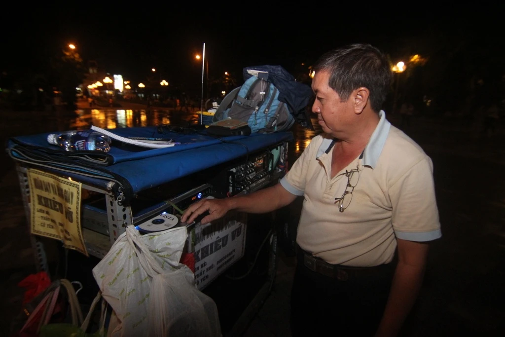 | Ông Lê Minh Huệ đổi dĩa nhạc cho bài nhảy. Ông Huệ biết khiêu vũ hơn 20 năm và từ 7 năm nay ngày nào ông cũng dạy khiêu vũ cho mọi người. |