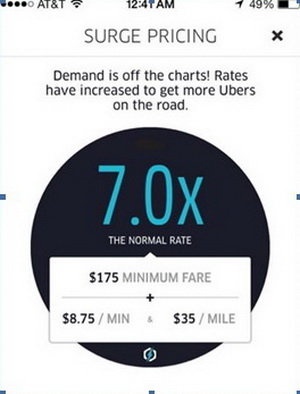Những giờ cao điểm thiếu xe, việc tăng giá gấp đôi là bình thường, đơn cử như gần đây sau lễ hội Halloween giá Uber bên Mỹ đã tăng gấp 7-8 lần so với bình thường. Lúc này người dùng không còn lựa chọn nào khác (sau khi taxi đã chết sạch).