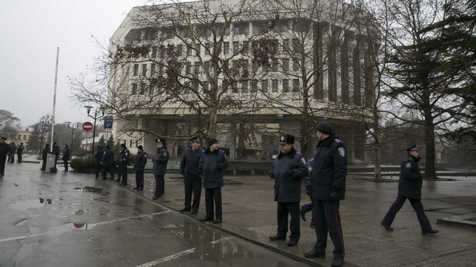 Cùng ngày, một số tay súng xông vào chiếm giữ tòa nhà công quyền ở Simferopol, thủ phủ vùng tự trị Crimea của Ukraina. Người dân sống trên bán đảo tự trị này đổ xuống đường phản đối chính quyền mới. Đụng độ xảy ra giữa những người ủng hộ và phản đối chính quyền. Phần lớn dân số trên bán đảo Crimea là người Nga và ủng hộ nước Nga. Đây là phần lãnh thổ Ukraina nhận năm 1954 từ Liên bang Xô Viết. Nga duy trì căn cứ hải quân lớn, bao gồm trụ sở của hạm đội Biển Đen, ở Crimea.