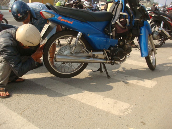 | Nhiều người bị trúng đinh thủng ruột (săm xe), phải dùng chìa khóa xe máy ngồi cạy đinh tại chỗ. |