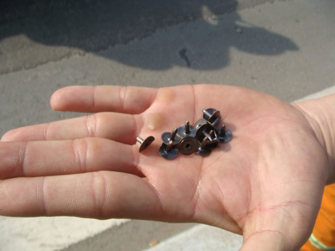 | Những chiếc đinh được cạy ra khỏi vỏ (lốp) xe. |