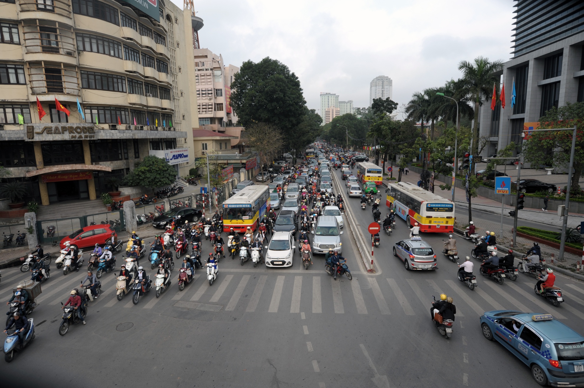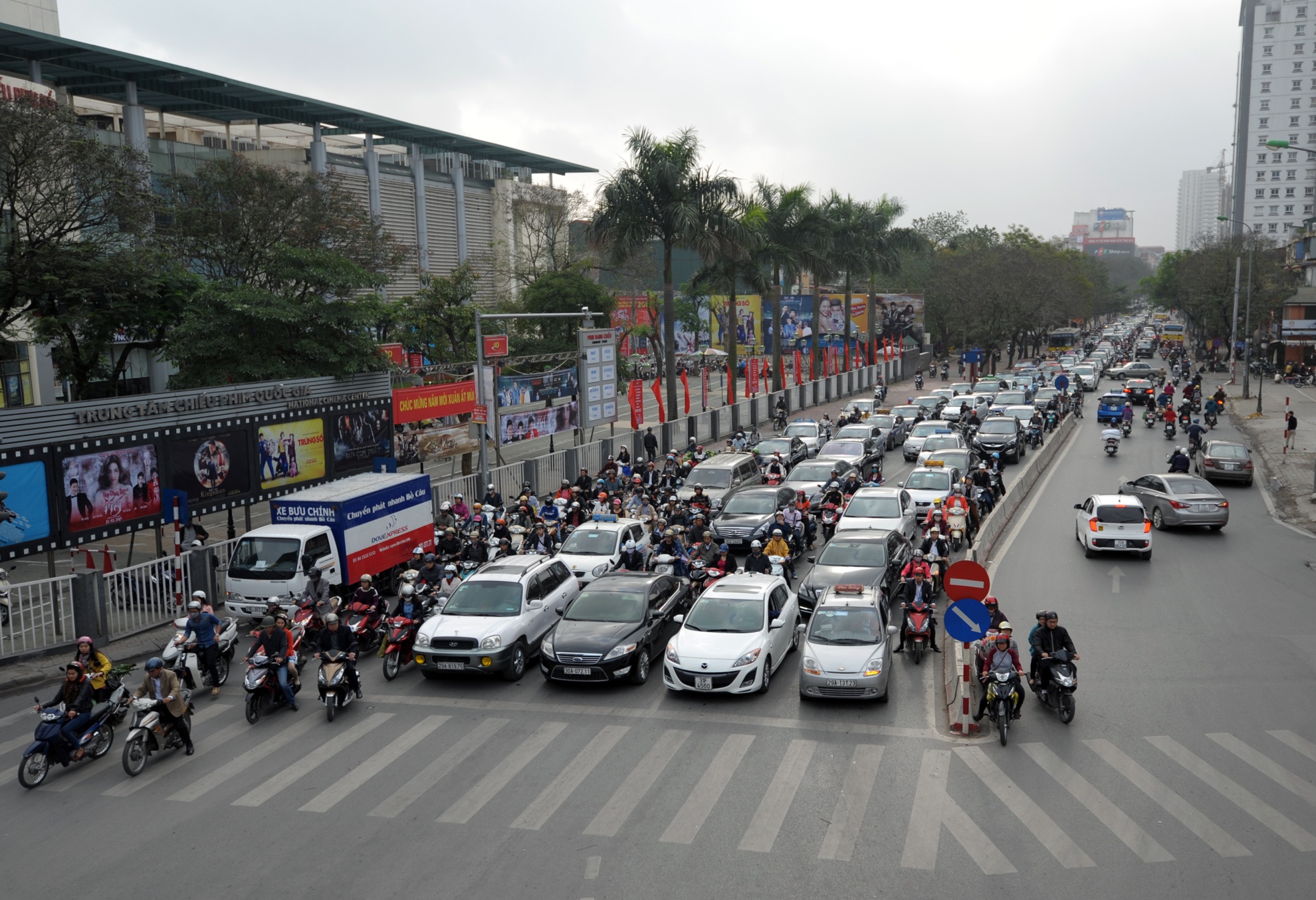| Lưu lượng phương tiện di chuyển từ Trần Quốc Hoàn, Trần Đăng Ninh, Xuân Thủy ra đường Cầu Giấy lớn. Trong khi tuyến đường này đang trong quá trình thi công trụ nhà ga số 6, số 7, lòng đường bị hạn chế dẫn đến tình trạng ùn tắc kéo dài. Ôtô, xe buýt không thể di chuyển, xe máy phải lao lên vỉa hè. |