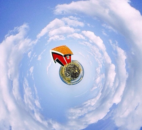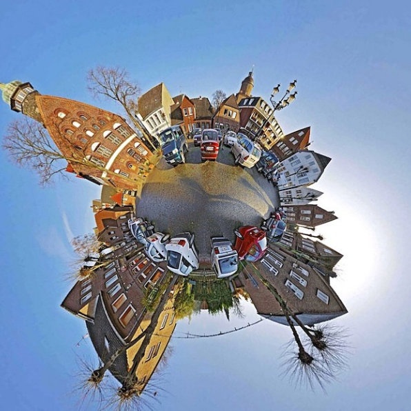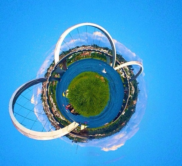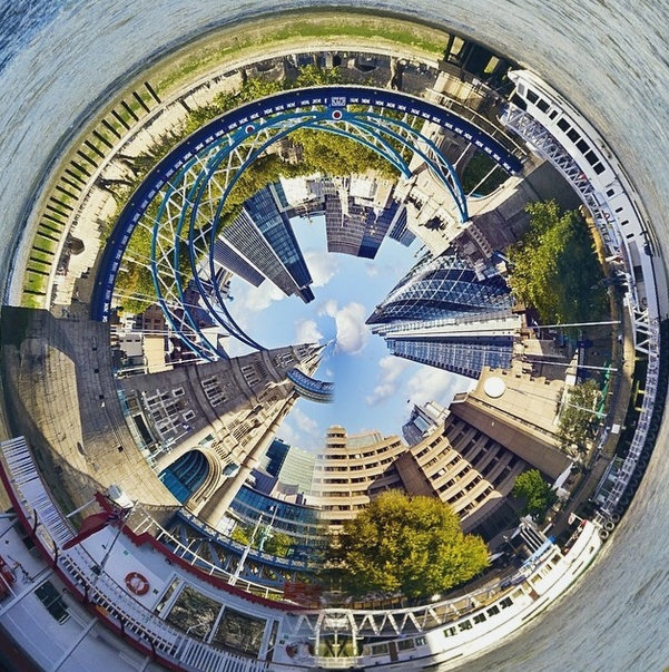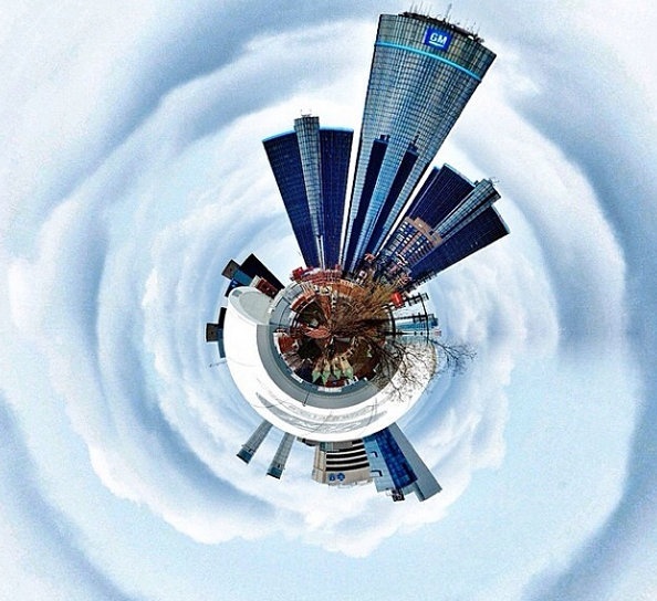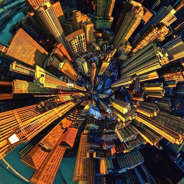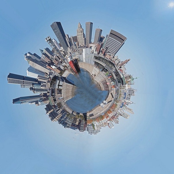 | Một góc chụp toàn cảnh ngang, khi hiển thị trông như quả cầu với những tòa nhà lớn. |