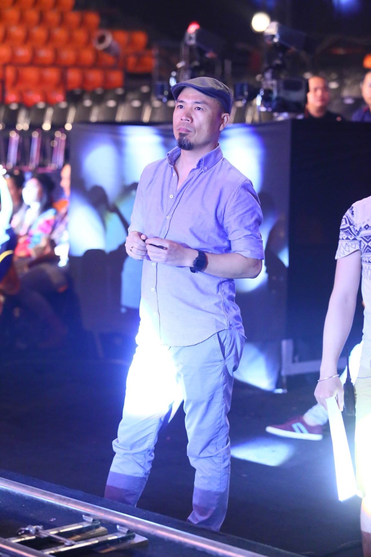 Kim Cương lặng lẽ ngồi cạnh Ưng Hoàng Phúc trong buổi tổng duyệt lần cuối trước đêm trao giải thưởng 400 triệu của Tuyệt đỉnh tranh tài.