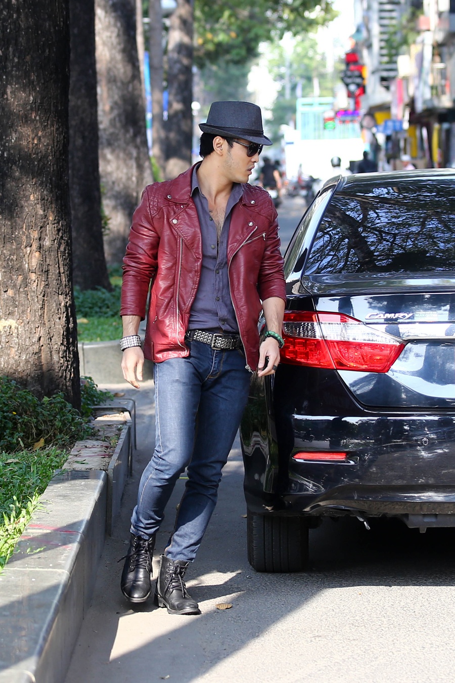 Chiều ngày 22/1, anh cùng bạn gái xuất hiện trên con phố Trần Hưng Đạo, quận 1, TP.HCM. Cả hai bị bắt gặp khi đang xuống xe và tiến vào gian hàng bán đồ trang trí Tết và bao lì xì. Ưng Hoàng Phúc nổi bật với phong cách mạnh mẽ, nam tính. Anh diện áo khoác da, quần jeans, boots cổ ngắn... bước đi với phong thái đỉnh đạc, tự tin.