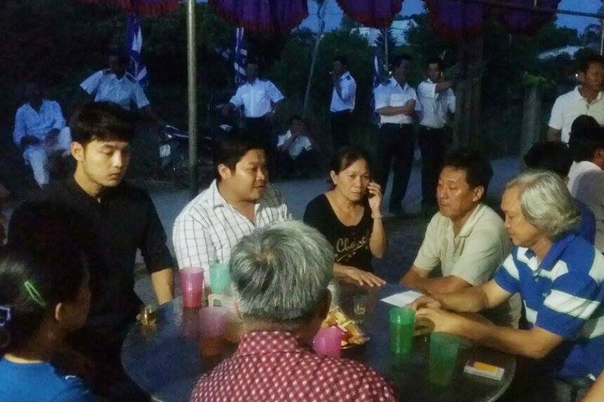 | Ưng Hoàng Phúc luôn túc trực bên người nhà, động viên mẹ Nguyễn Giàu. Anh và bạn gái còn đứng ra đón bà con, người quen gần xa đến viếng. Trong ảnh, nam ca sĩ ngồi chung bàn với họ hàng của Nguyễn Giàu. |
