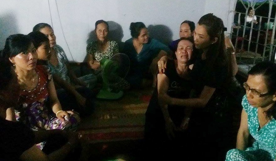 | Người mẫu Kim Cương động viên đấng sinh thành của Nguyễn Giàu. Sự tận tình của cô khiến nhiều người cảm động. |