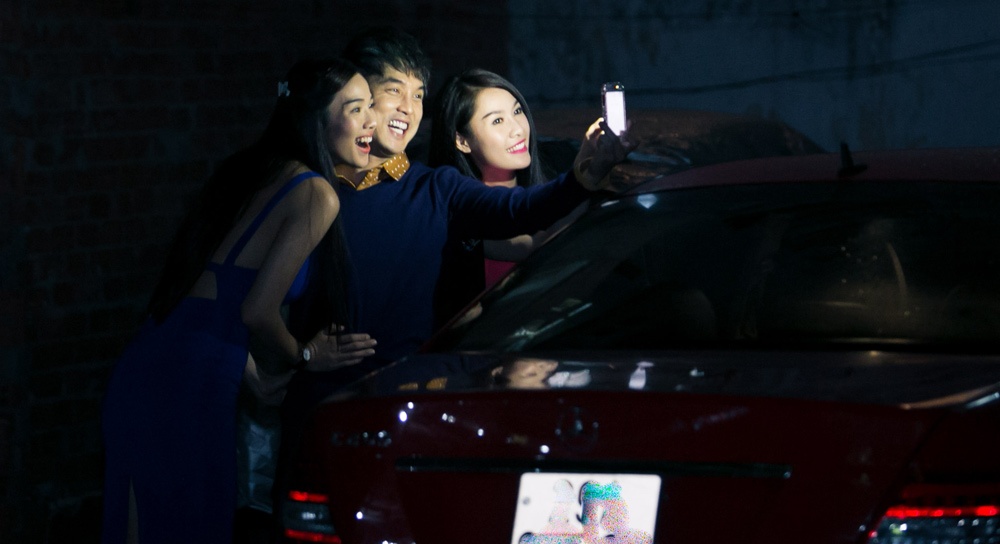 | Sau khi ăn tối, họ ra xe và vui vẻ chụp hình trước khi chia tay. |