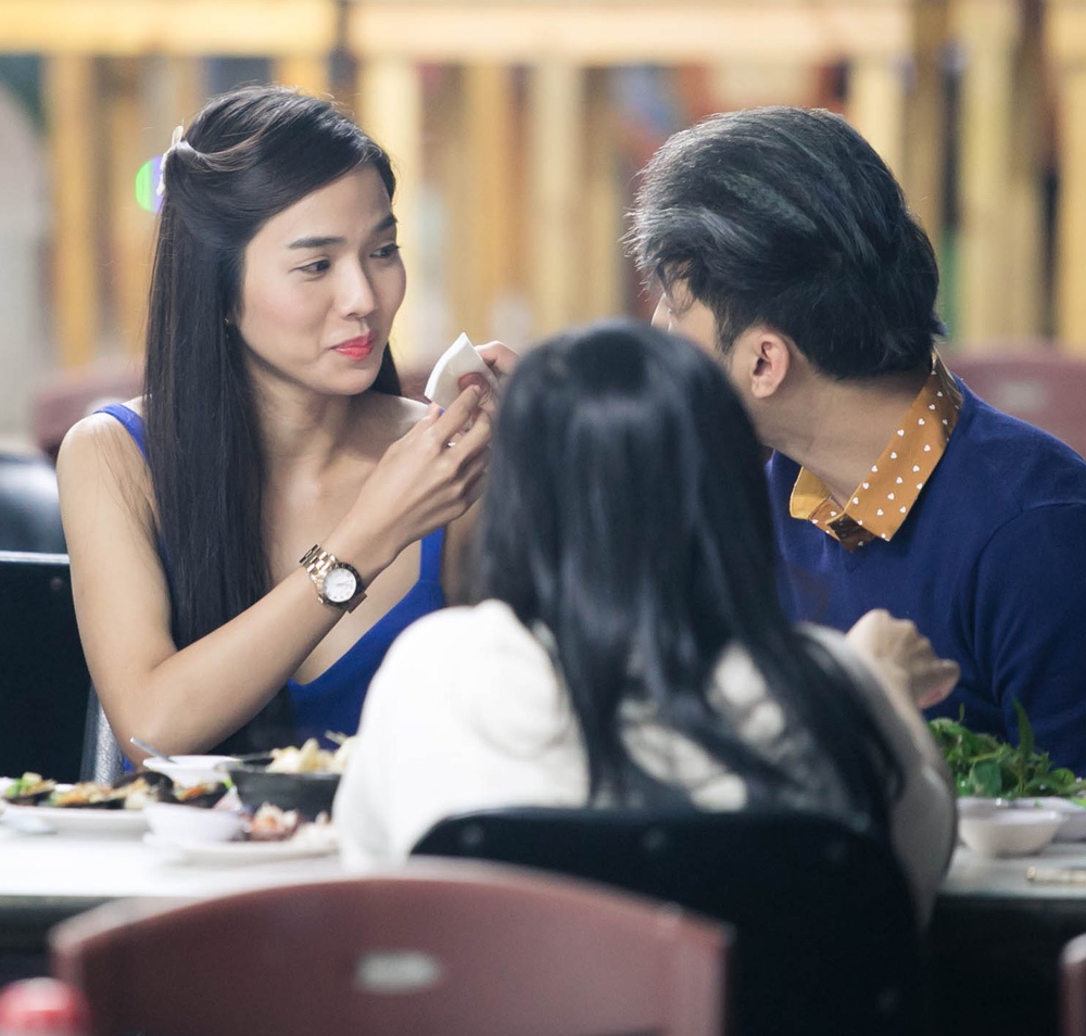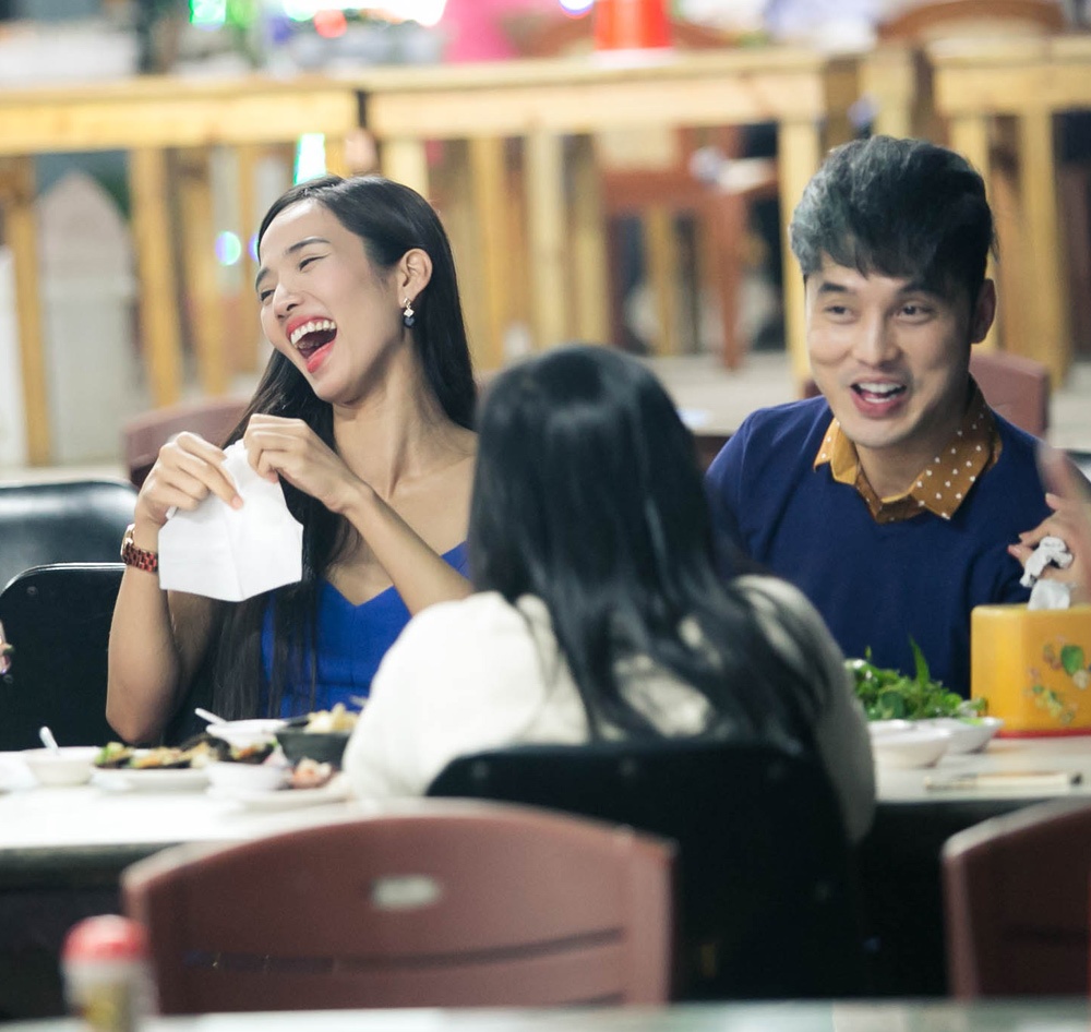 Sau khi cùng nhau dự một buổi ra mắt phim ở TP.HCM, cặp đôi không vội về nhà mà rủ bạn bè ghé một quán ăn quen thuộc.
