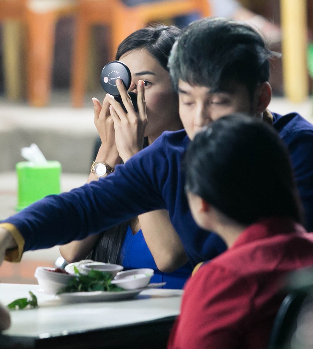 | Ưng Hoàng Phúc và bạn gái ra lấy xe rồi đi ăn khuya. Để tránh sự quan tâm của người đi đường, hai người đi cách xa nhau. Từ khi công khai yêu gái một con là người mẫu Kim Cương, chuyện tình cảm của Ưng Hoàng Phúc được chú ý đặc biệt. |