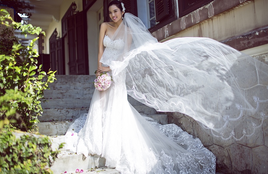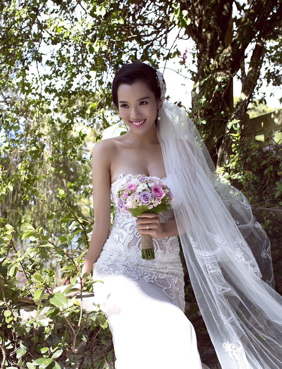 | Bà mẹ 29 tuổi quyến rũ trong đầm cưới ren. Theo kế hoạch, họ sẽ tổ chức đám cưới vào đầu năm 2017, thời điểm hợp tuổi hai vợ chồng. |