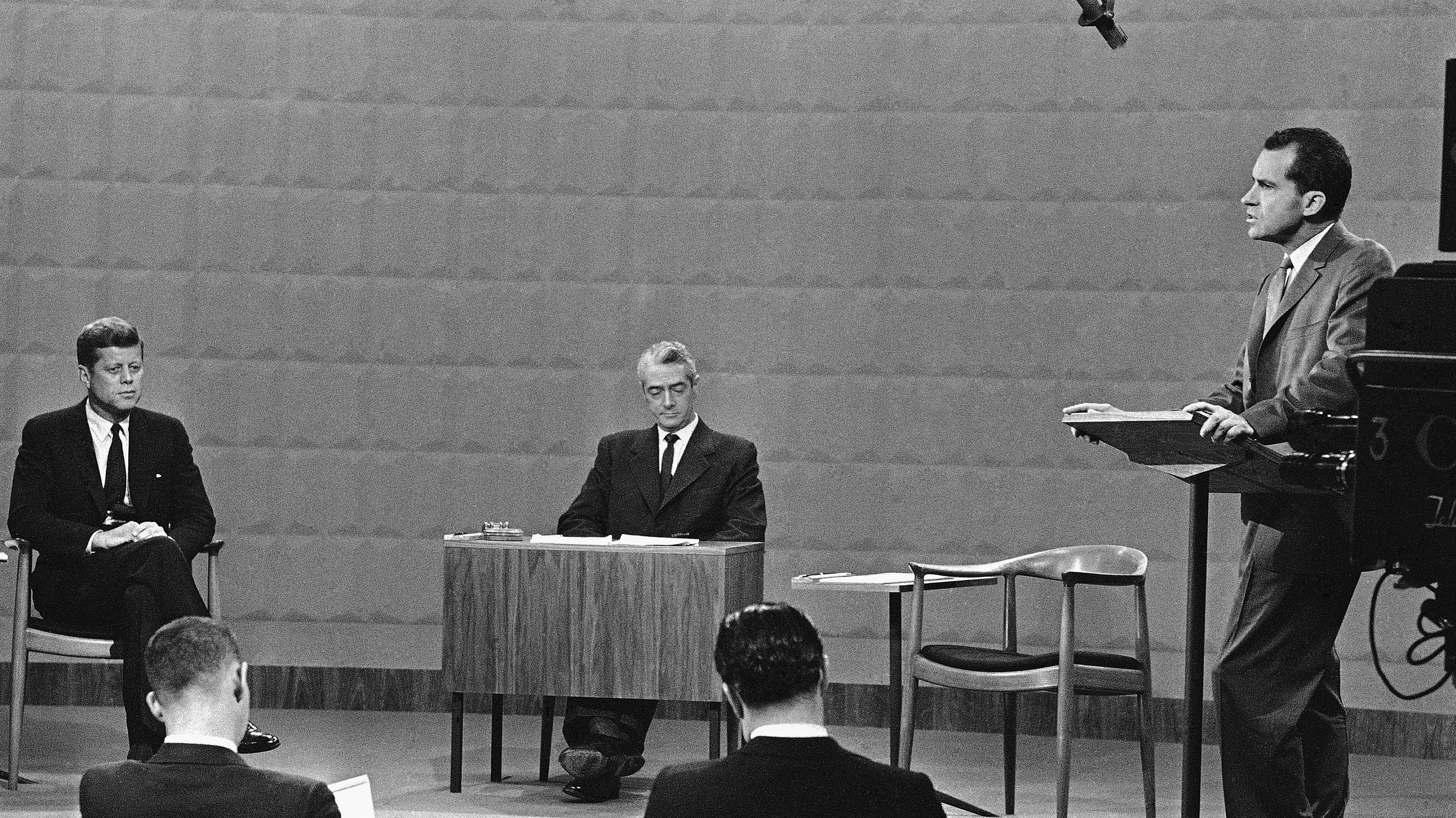 Cũng trong mùa bầu cử năm 1960, vòng tranh luận thứ ba giữa Kennedy và Nixon diễn ra theo cách đặc biệt khi hai ứng viên không xuất hiện chung trên một sân khấu. Kennedy ngồi ở trường quay tại New York trong khi Nixon ghi hình tại Hollywood, cách nhau gần 5.000 km. Người điều khiển cuộc tranh luận lại ngồi ở một trường quay khác.