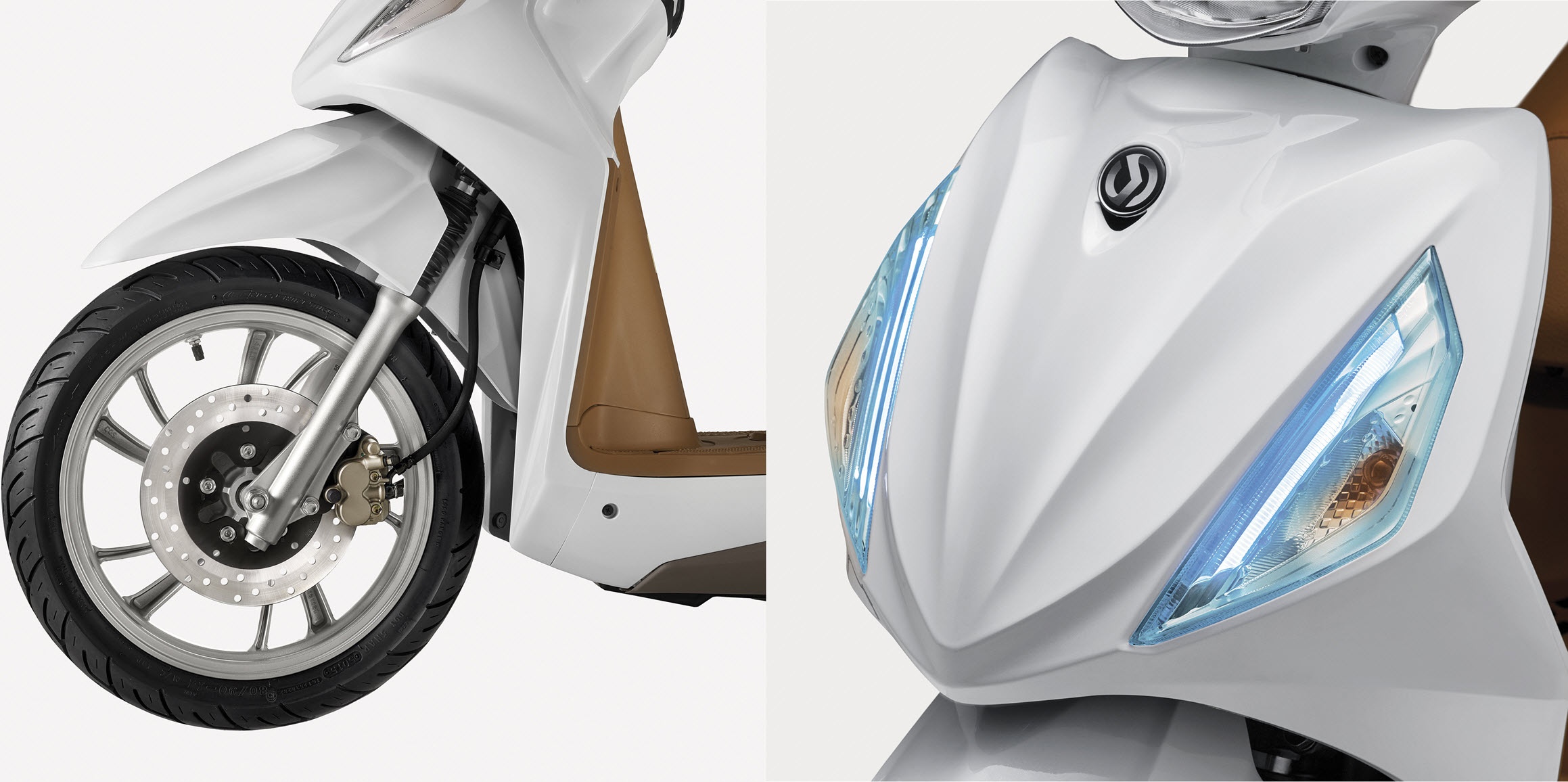 Yếu tố an toàn cũng được nhà sản xuất đặt lên hàng đầu khi thiết kế gầm xe cao 130 mm. Đây là yếu tố đảm bảo tính an toàn cao trong các điều kiện địa hình khác nhau như đường gồ ghề, bậc cấp, vỉa hè... Bánh xe lớn 14 inch giúp ổn định cho người lái và xử lý tình huống tốt hơn. Bánh mâm thiết kế mới theo dạng 5 cánh kép xoắn cong tăng cường phản hồi lực, tôn thêm vẻ đẹp cho xe. Từ đó, giúp cân bằng khả năng linh hoạt và ổn định hơn cho người lái xe.