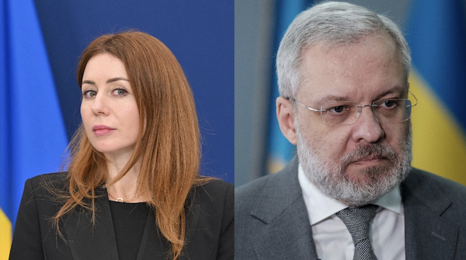 Bộ trưởng Tư pháp Herman Halushchenko (bên phải) và Bộ trưởng Năng lượng Svitlana Hrynchuk đã đệ đơn từ chức lên Thủ tướng Ukraine Yulia Svyrydenko. Ảnh: Getty Images |