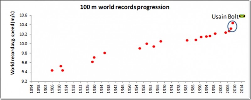 | Các kỷ lục nội dung chạy 100 m từ năm 1894 liên tục bị phá vỡ. Ảnh: Engineeringsport. |
