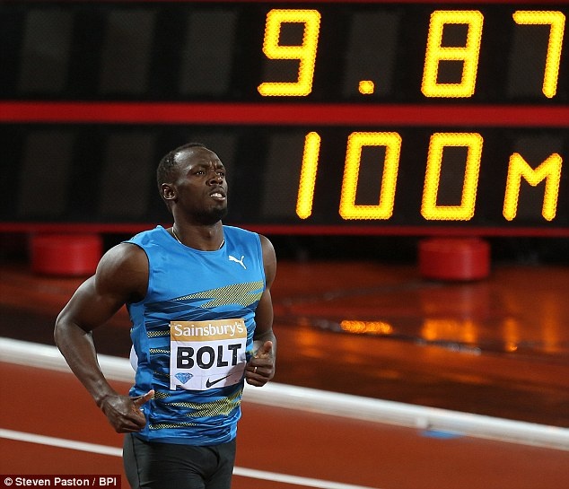 | Dù vừa trải qua 6 tuần dưỡng thương Usain Bolt vẫn chinh phục đường đua sở trường. Ảnh: Daily Mail. |
