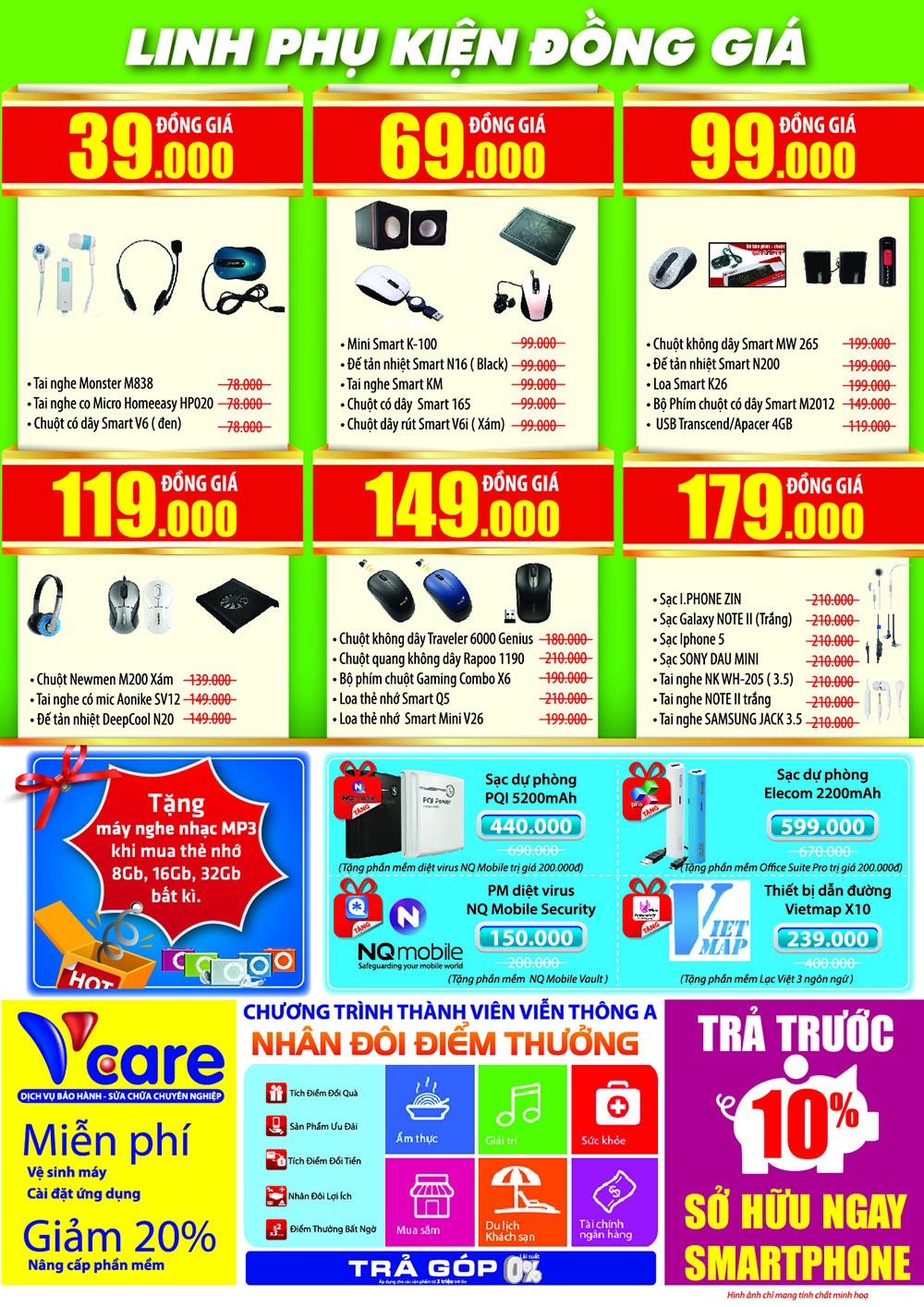 Viễn Thông A đang áp dụng chương trình đồng giá cho linh phụ kiện với mức giá cực kì hấp dẫn: