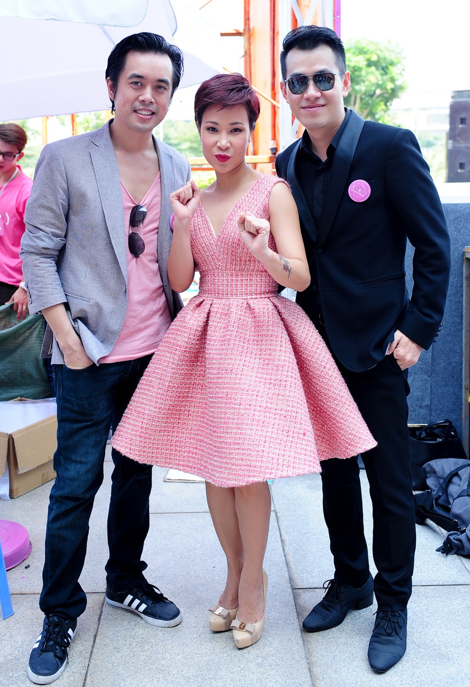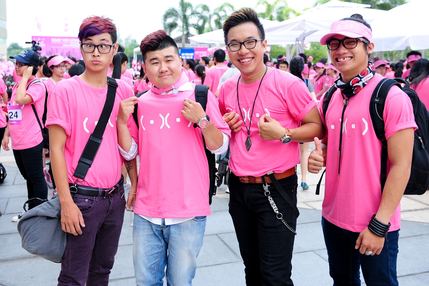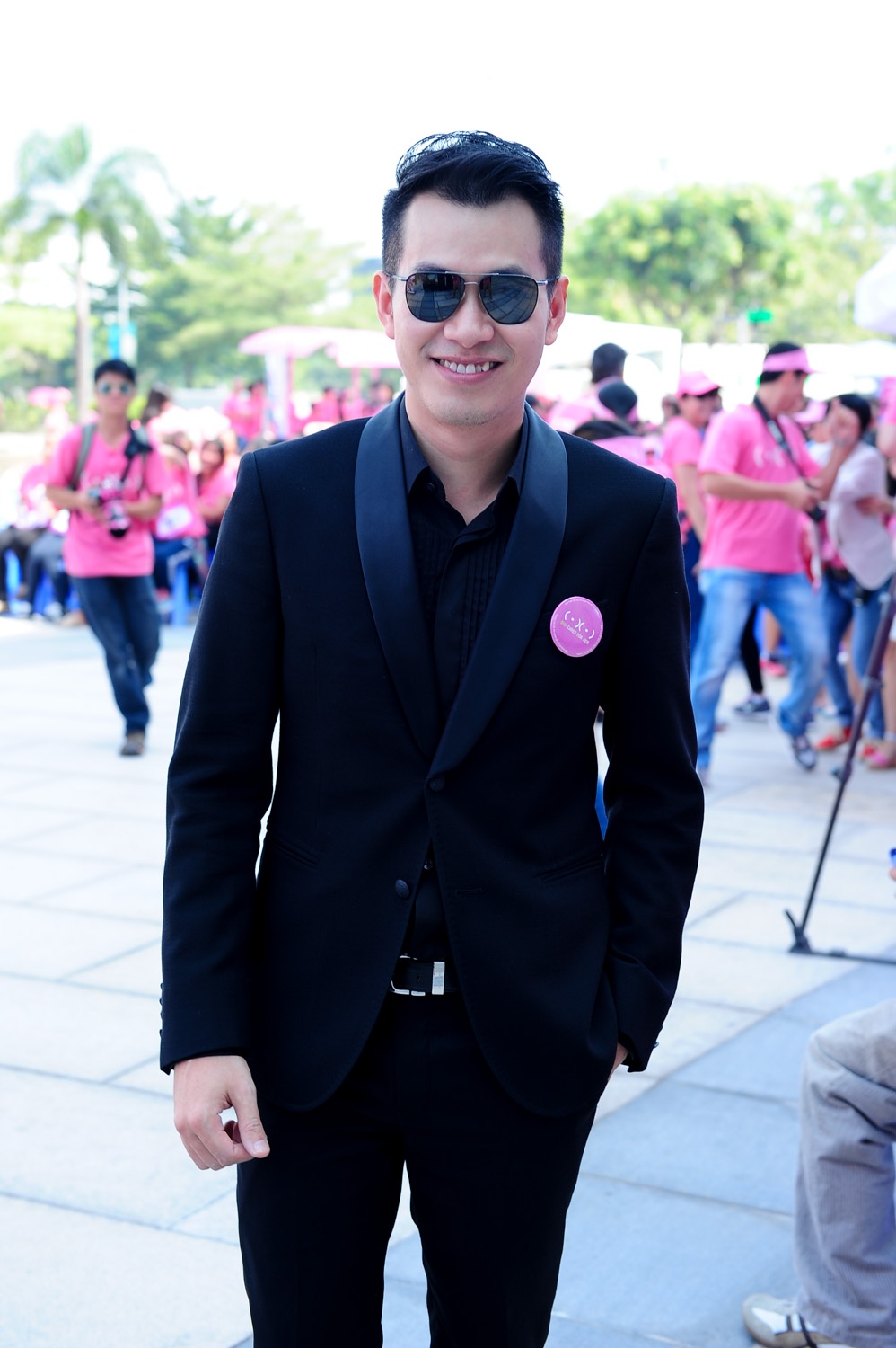 | Xuất hiện trong chương trình đi bộ Ngày hội hồng, cổ động cho phong trào chống ung thư vú, diễn ra tại TP.HCM, sáng 18/10, Uyên Linh nổi bật với bộ cánh bắt mắt. |