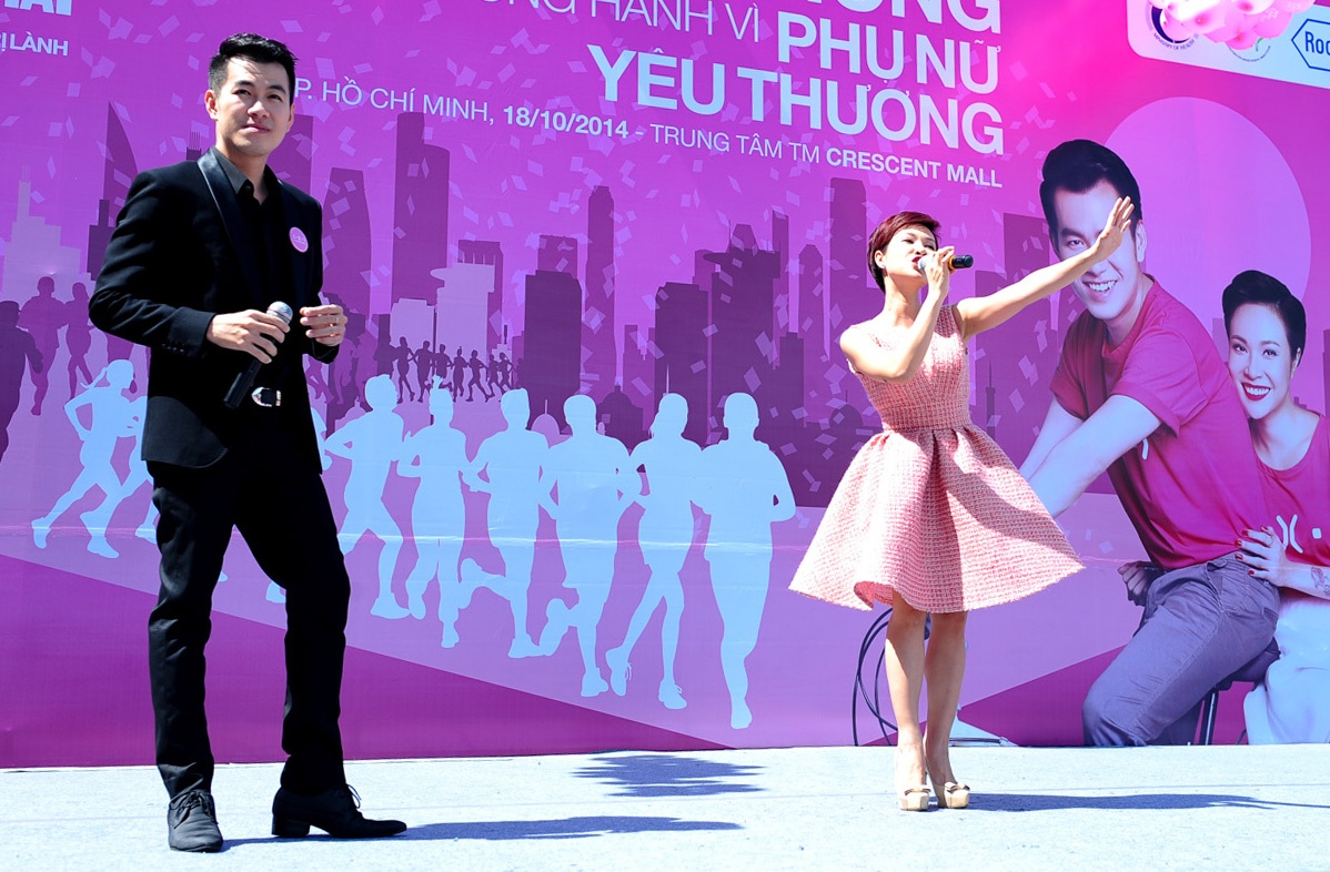 | Uyên Linh và Hồ Trung Dũng - hai đại sứ của chương trình kêu gọi mọi người ý thức hơn trong việc ngăn ngừa ung thư vú, căn bệnh nguy hiểm cướp đi sinh mạng của hơn 50.000 phụ nữ mỗi năm trên thế giới. |