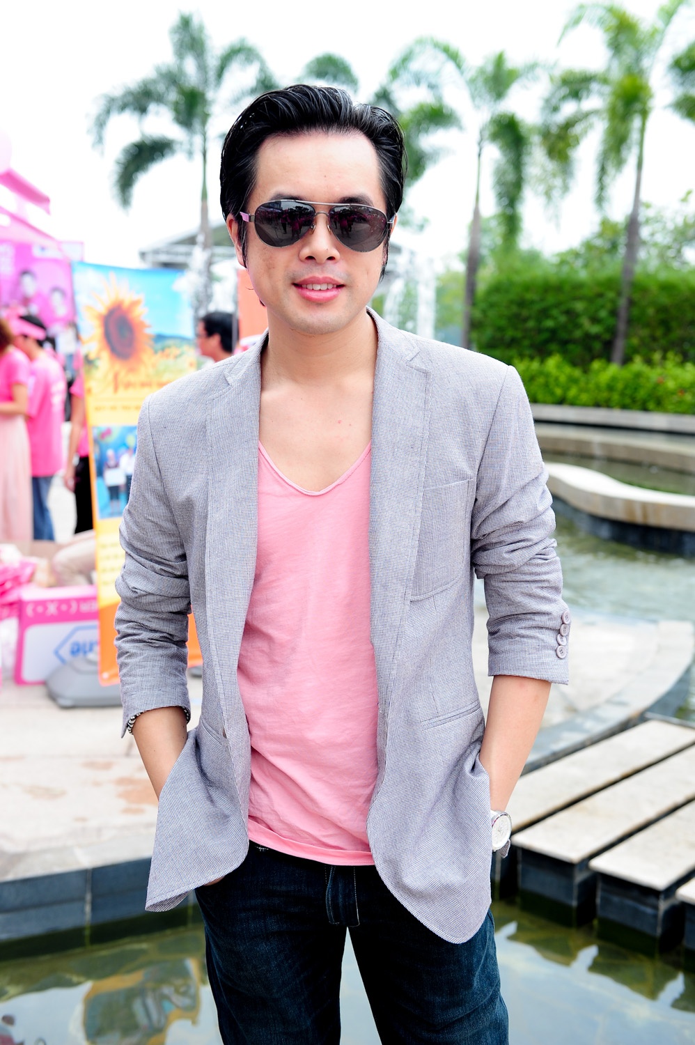| Dương Khắc Linh tranh thủ góp mặt ở sự kiện xã hội trước khi cùng 2 nhóm nhạc chuẩn bị tranh tài cho đêm chung kết. Nhóm O-Plus do anh hướng dẫn có nhiều cơ hội đăng quang ngôi quán quân. |
