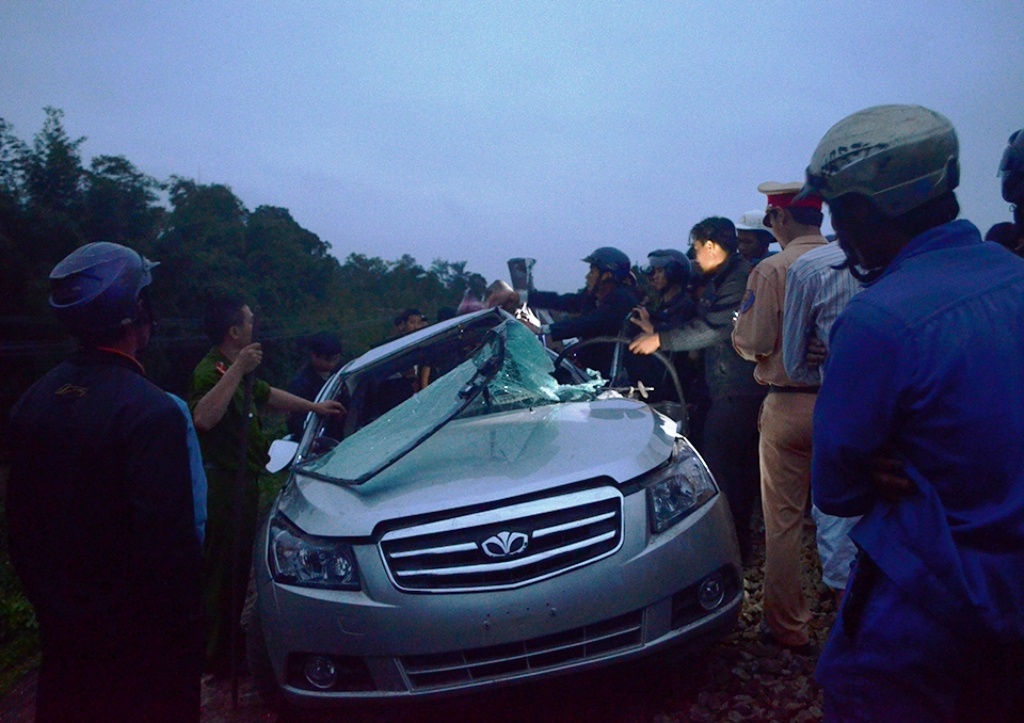 Cú va chạm rất mạnh khiến ô tô bị đẩy đi xa hơn 100m, nằm chắn ngang đường sắt và hư hỏng nặng. Một công an tử vong tại chỗ, một người chết trên đường đi cấp cứu.