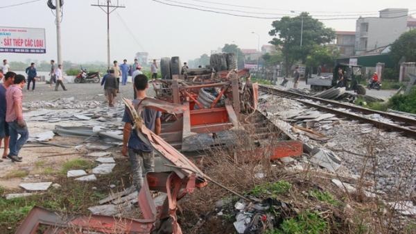 Tại hiện trường, chiếc xe rơmooc chở theo hàng trăm khối đá granite bị lật ngửa ngay bên đường ray. Khối lượng lớn đá granite vỡ vụn, phần đầu xe đã được tháo rời và di chuyển đến nơi khác. Nhiều đoạn dải phân cách bị cong, đứt rời. Tàu hỏa va chạm với xe cũng đã di chuyển khỏi hiện trường.