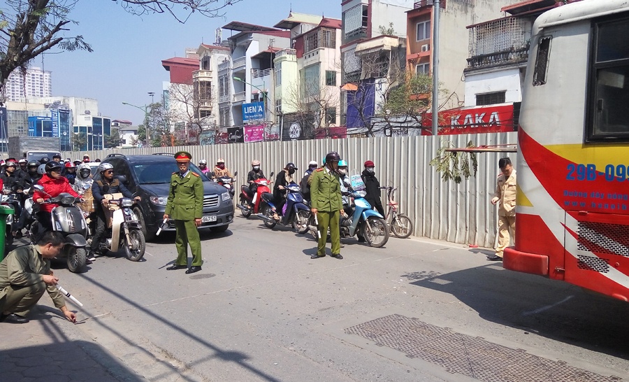 Lúc này, xe buýt tuyến 32 (Nhổn - Giáp Bát) đang chạy sát đó nên nạn nhân bị bánh sau của xe cán qua và tử vong. Người còn lại văng vào rìa đường.