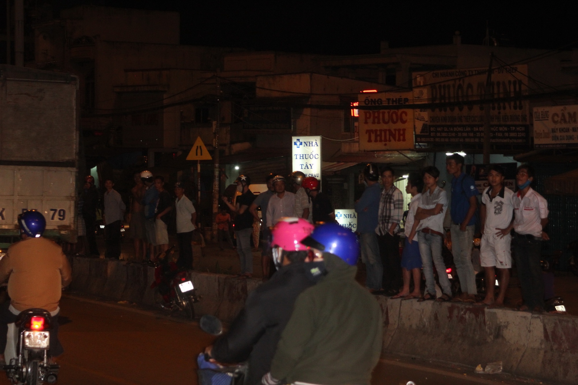 | Rất đông người dân hiếu kỳ đứng xem vụ việc. |