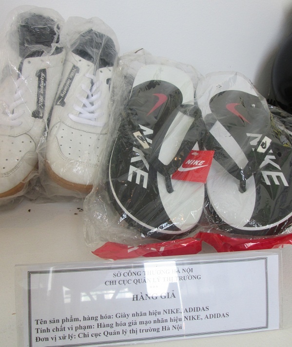 Nhiều nhãn hiệu giày dép cũng bị làm giả bán trên thị trường và bị thu hồi.