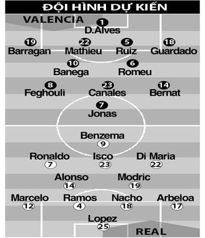 | Khi Valencia (áo trắng) gặp khủng hoảng, Ronaldo và đồng đội sẽ có một chiến thắng dễ dàng. |