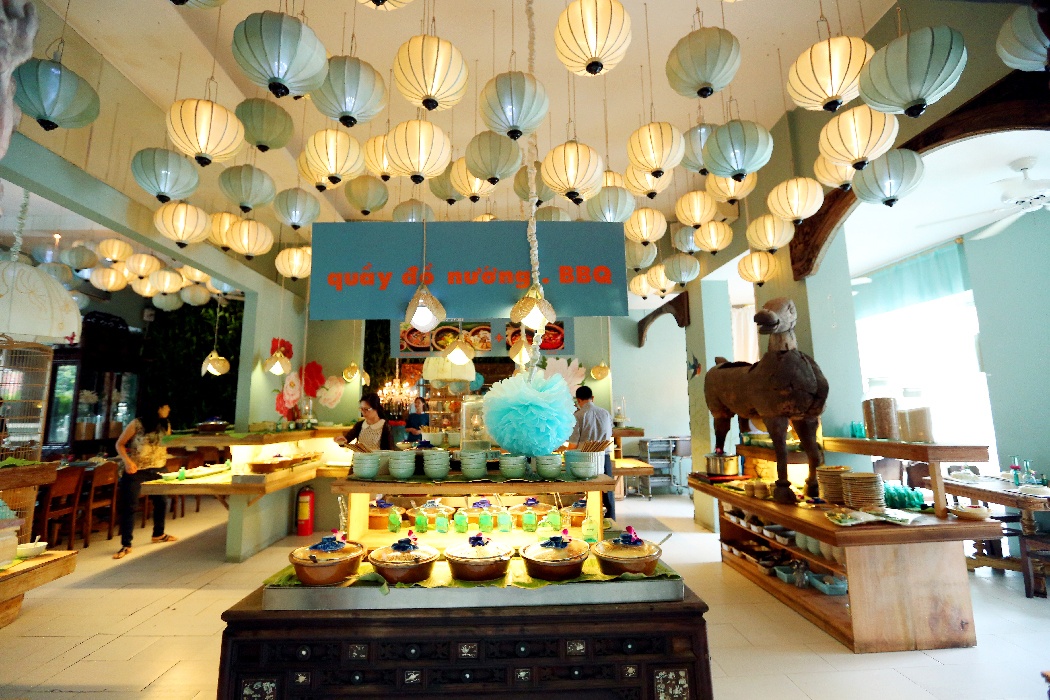 Không gian trang trí đẹp nhẹ nhàng và thoải mái ở Gạo buffet.