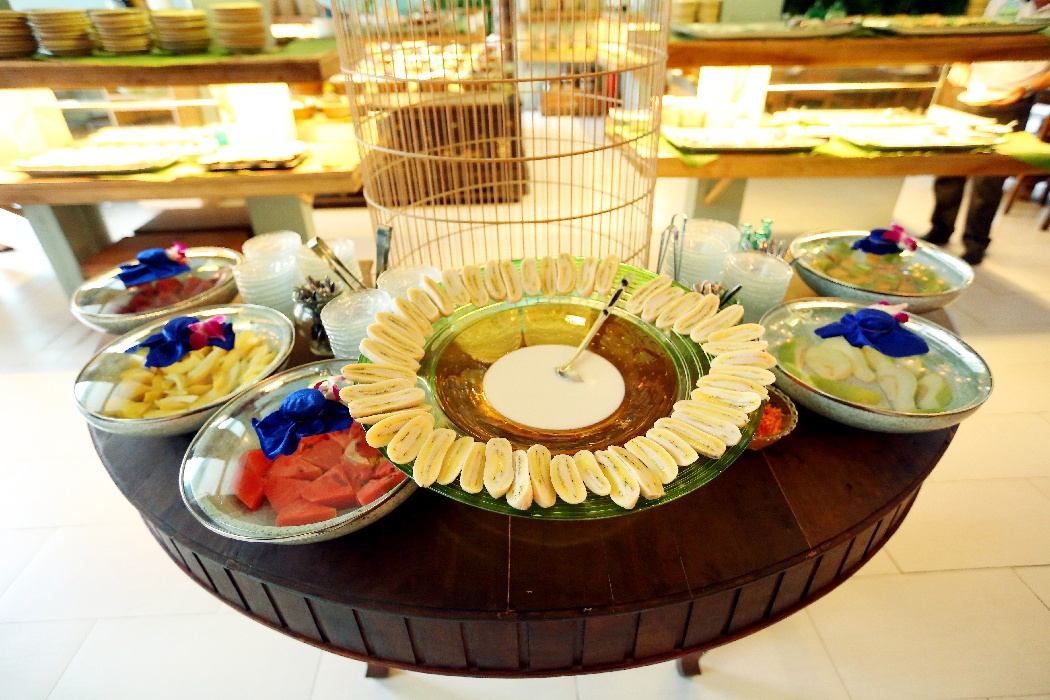 Thực đơn tại Gạo buffet phong phú đa dạng với hơn 60 món, từ món ăn chơi như gỏi cuốn, nem cuốn, bò bía, hột vịt lộn xào me… đến món chính như cá kho tộ, canh chua, bún thịt nướng… món lẩu như lẩu cua, lẩu tôm càng, lẩu lươn, lẩu gà lá giang…