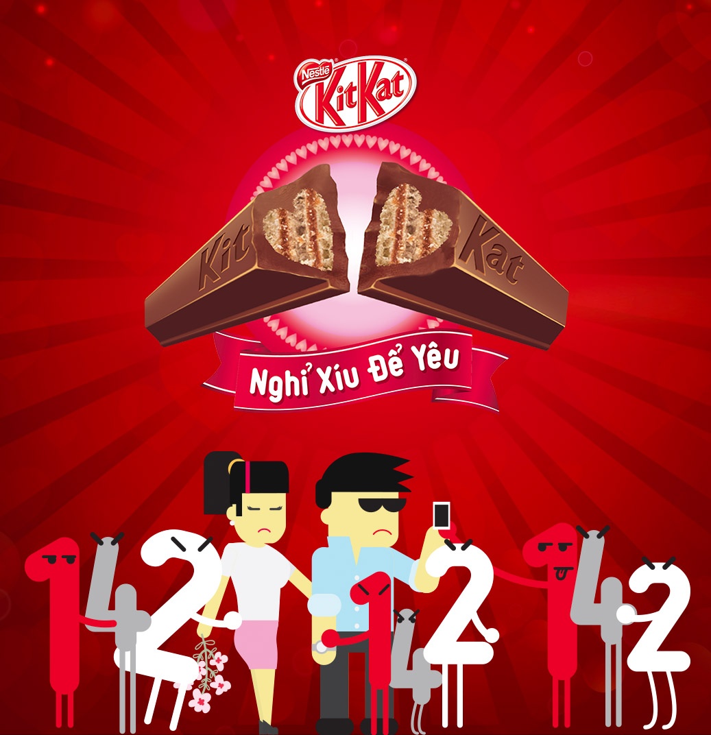 Những trường hợp oái ăm kể trên hẳn là không xa lạ gì đối với đa số các bạn trẻ. Valentine dường như đang trở nên "lãng xẹt" hơn lãng mạn. Vậy có bao giờ bạn nghĩ đến giải pháp: "nghỉ xíu để yêu" và thoát khỏi các vấn đề trên? Hãy ghé thăm trang fanpage của KitKat để cùng chia sẻ những kỉ niệm oái ăm của mình, cũng như những "cao kiến" để các cặp đôi tận hưởng một ngày Valentine thật lãng mạn.