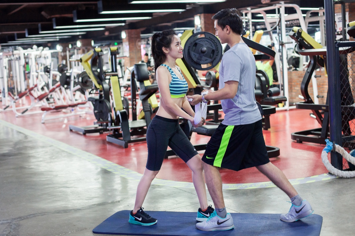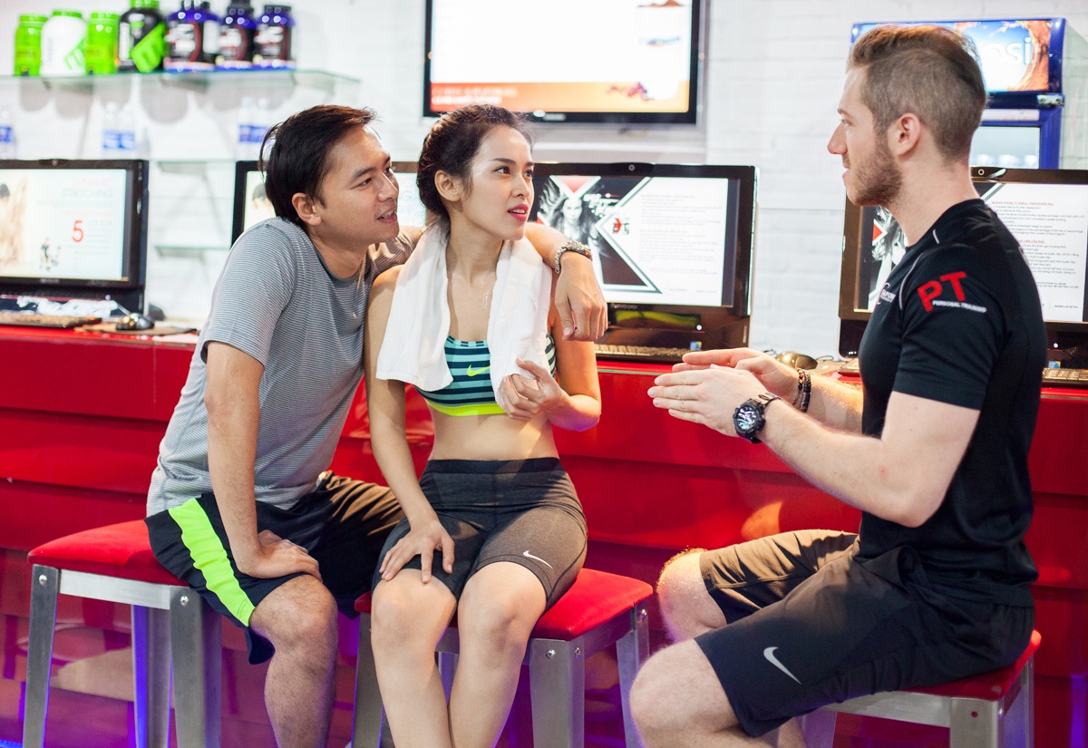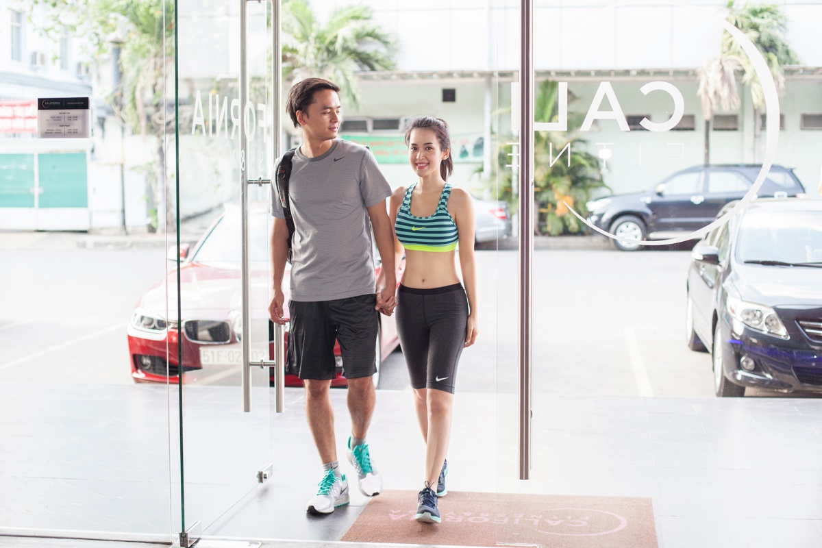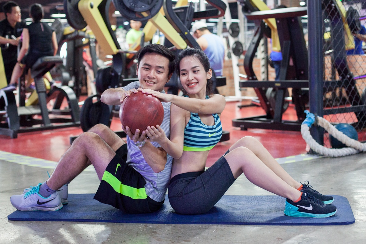 | Cặp đôi thể hiện sự tình tứ khi tập luyện chung. Việc dành mỗi ngày từ 1-2 giờ để luyện tập gym và các môn thể thao giúp Tú Vi sở hữu thân hình thon gọn, săn chắc. |