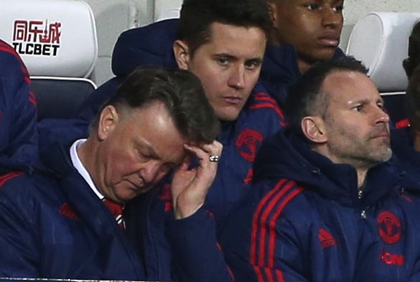| HLV Van Gaal (phải) thất vọng khi MU thua West Brom. Ảnh: Getty Images. |